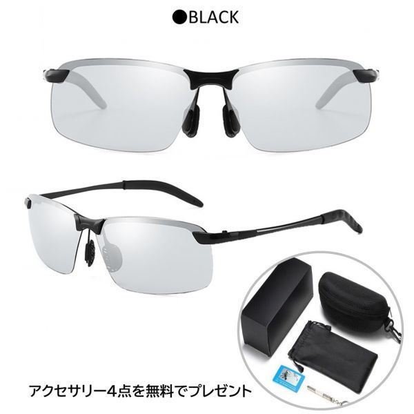 □◆◇ ブラック 変色調光 偏光 サングラス 豪華4点アクセサリー付き ◇◆□ |