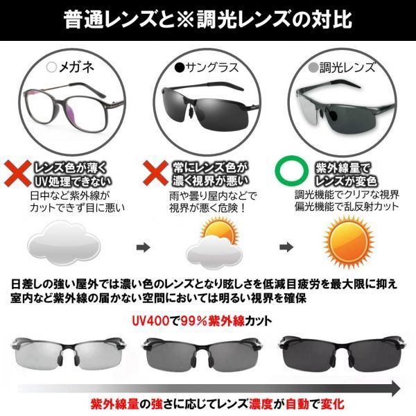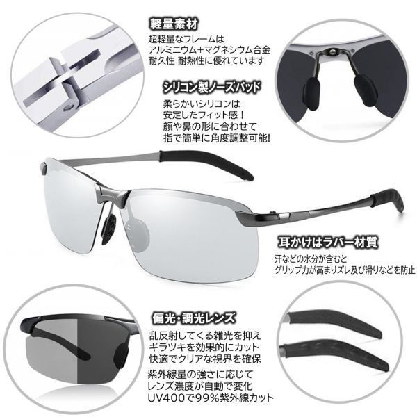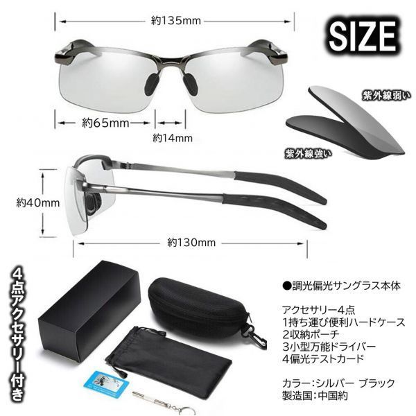 変色調光 偏光 サングラス 豪華4点アクセサリー付き 紫外線カット UV400