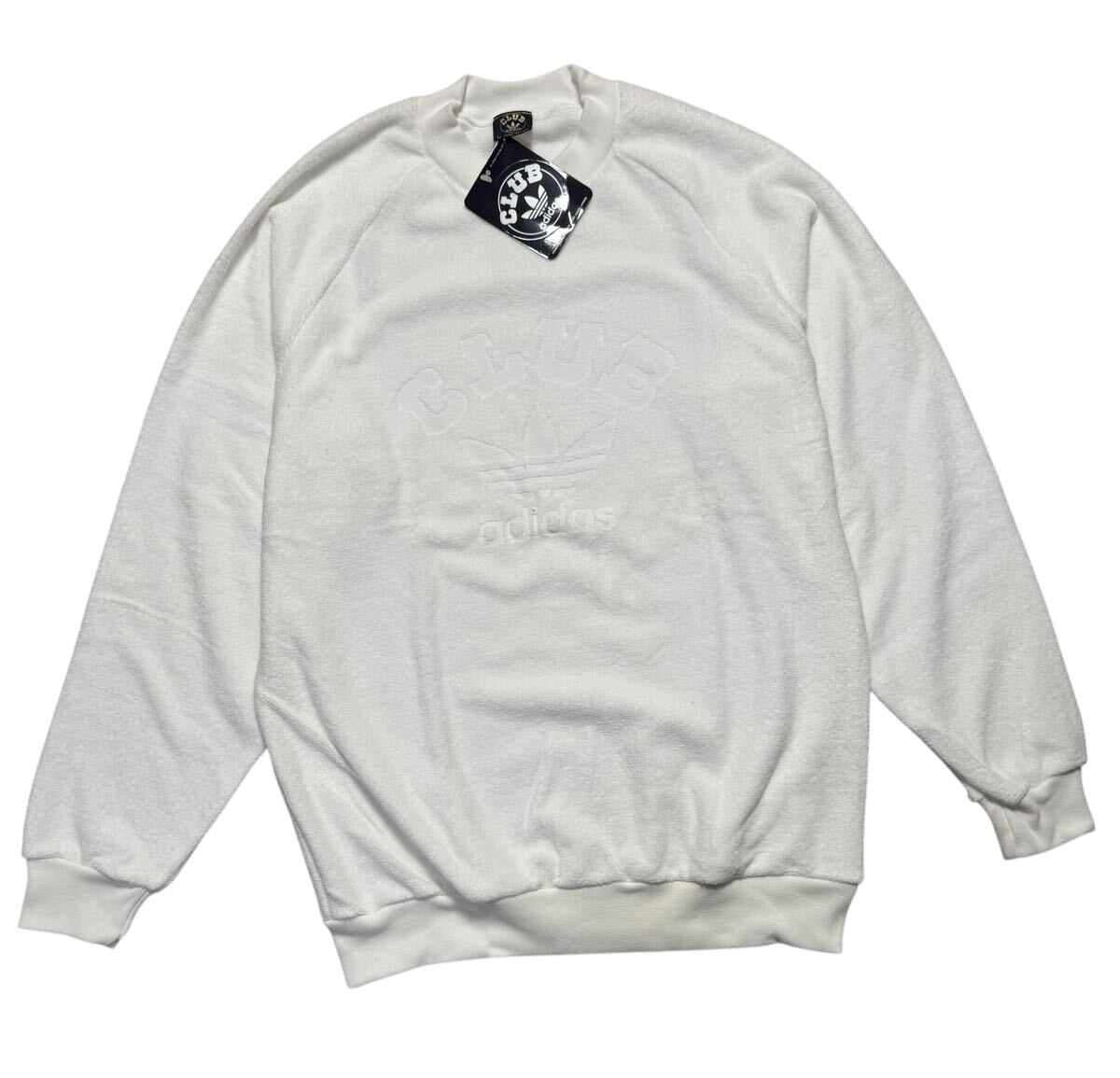 未使用品 ビンテージ 80s CLUB adidas クラブアディダス タオル地 スウェット ホワイト L
