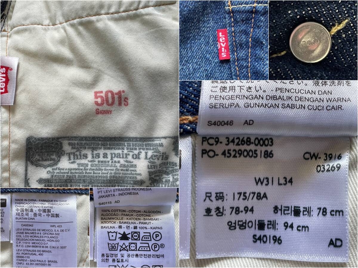 廃番 Levi's 501S SKINNY w31 リーバイス 501S スキニー 34268-0003 オリジナルレングス
