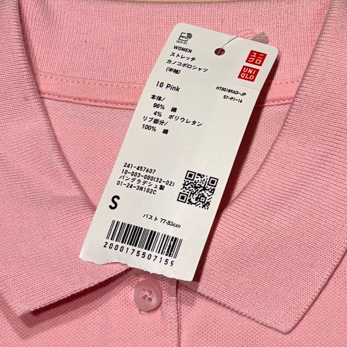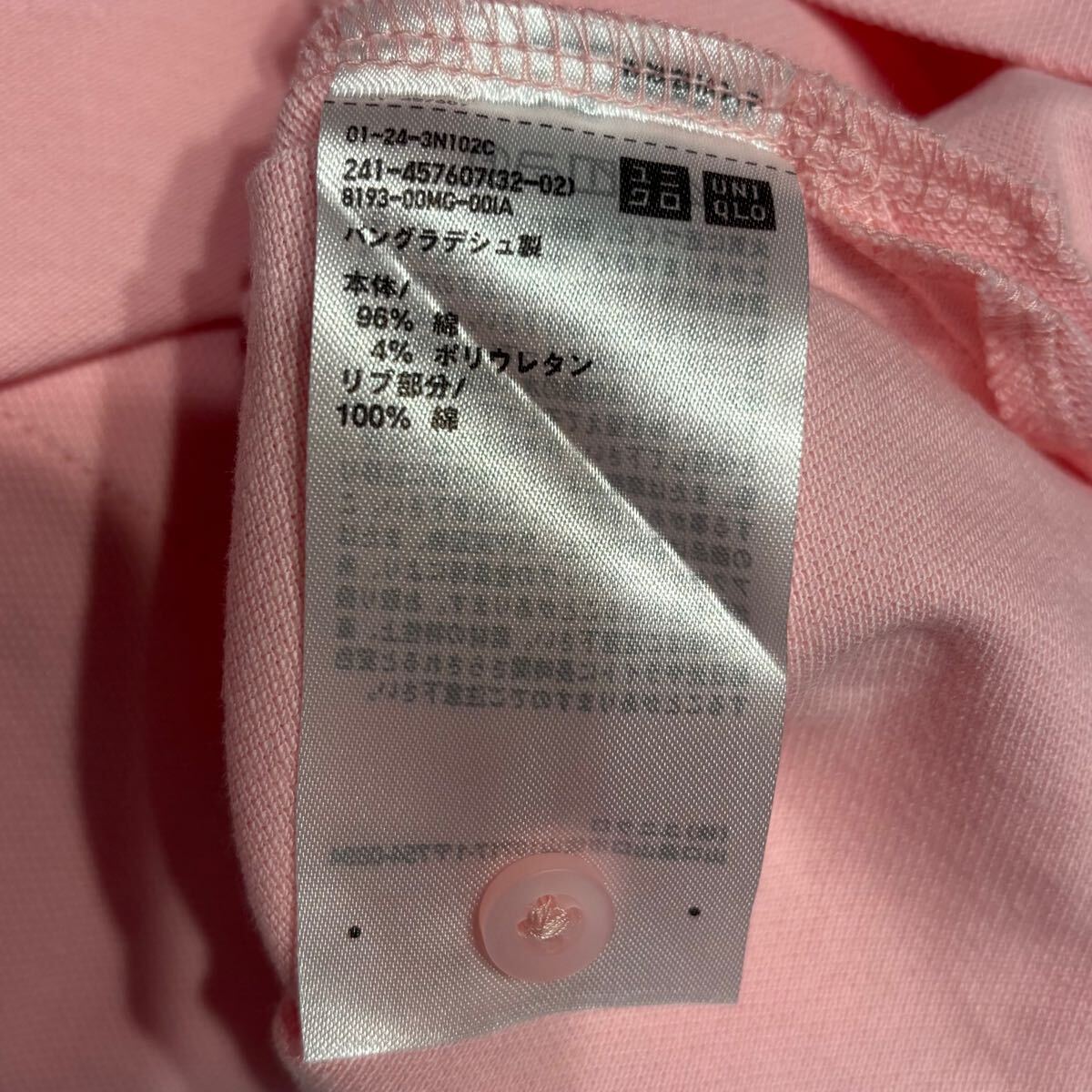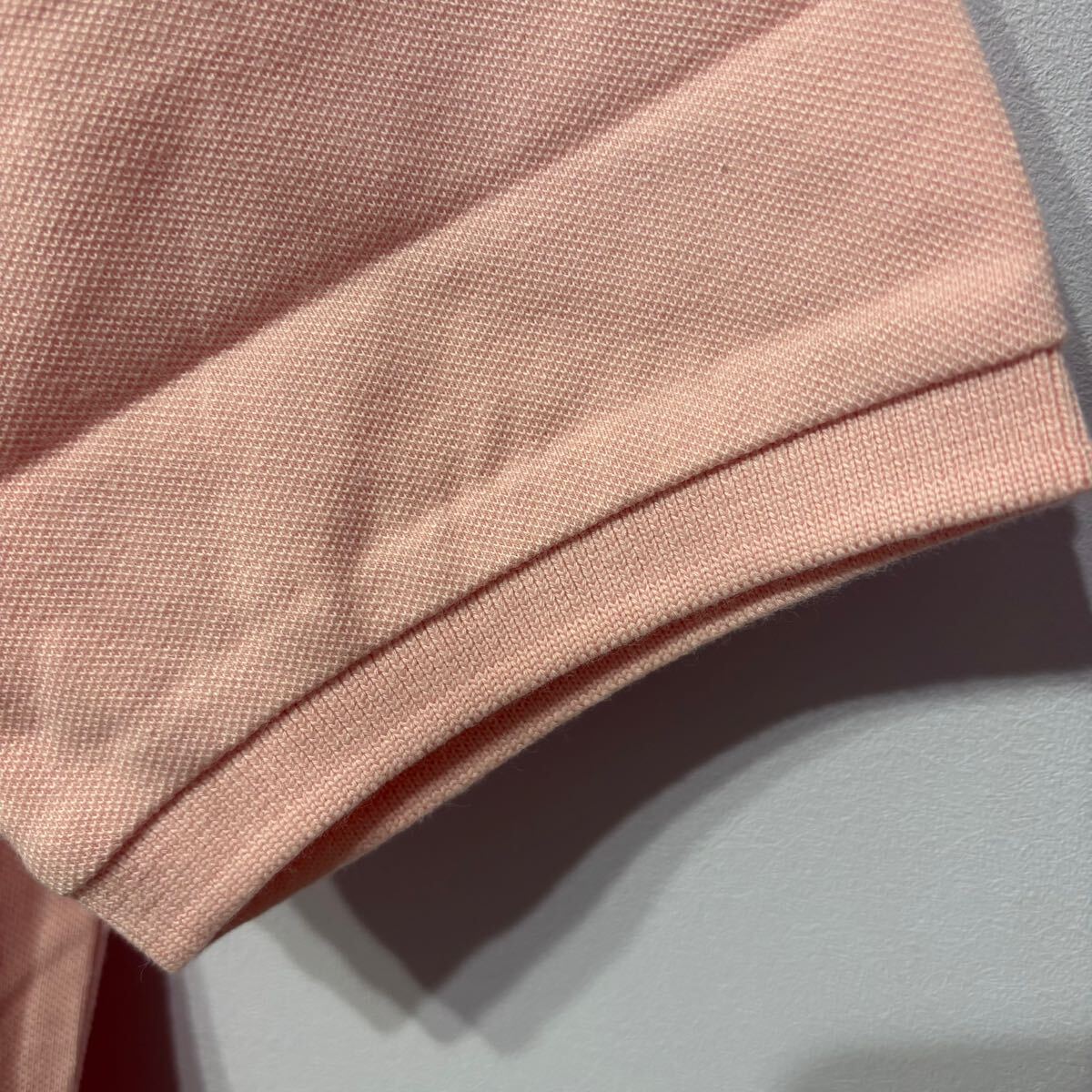 コットン素材のピンクの半袖ポロシャツで、ストレッチが効いているので、とても着やすいと思います。