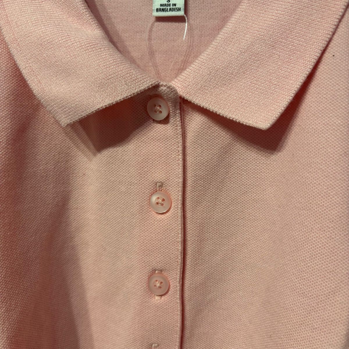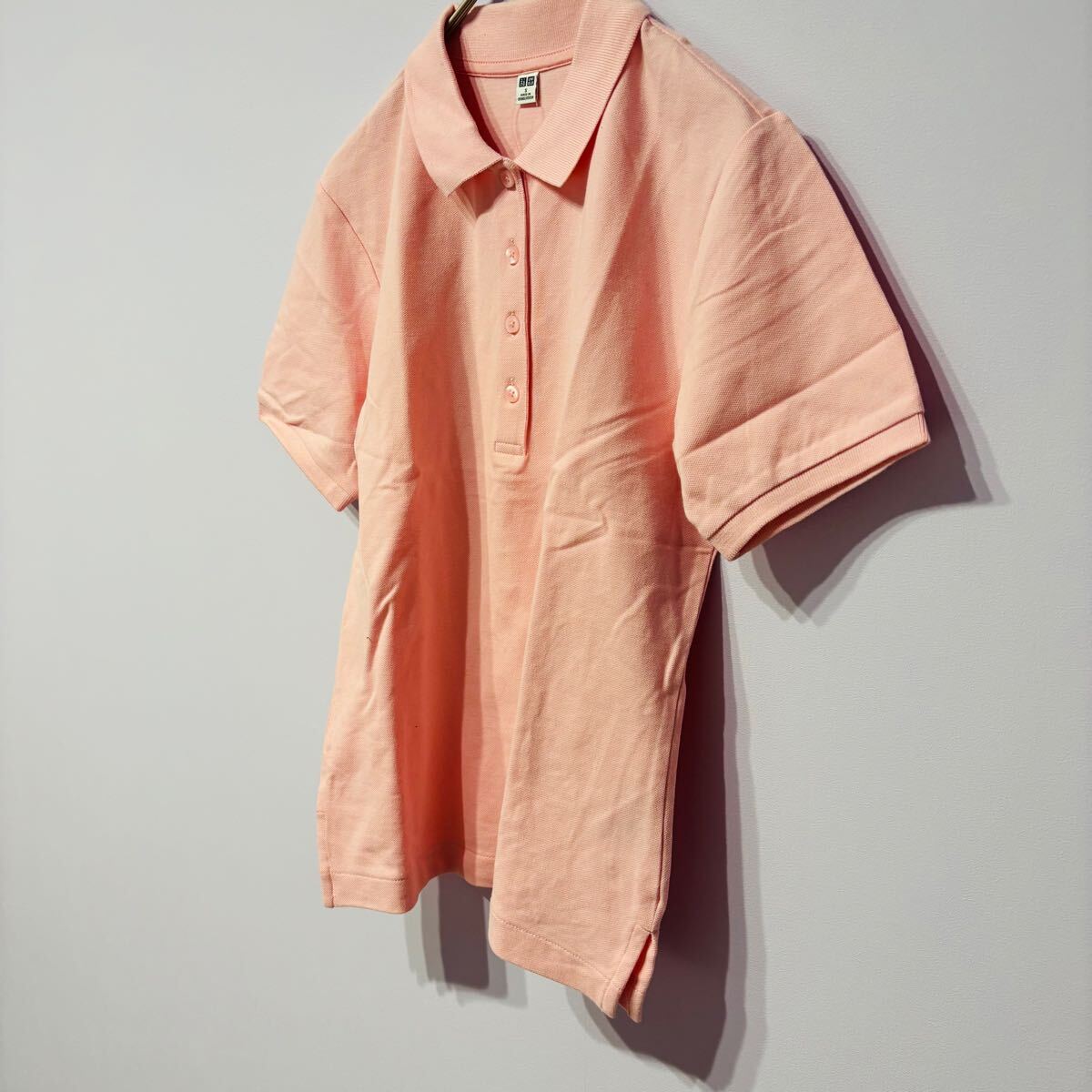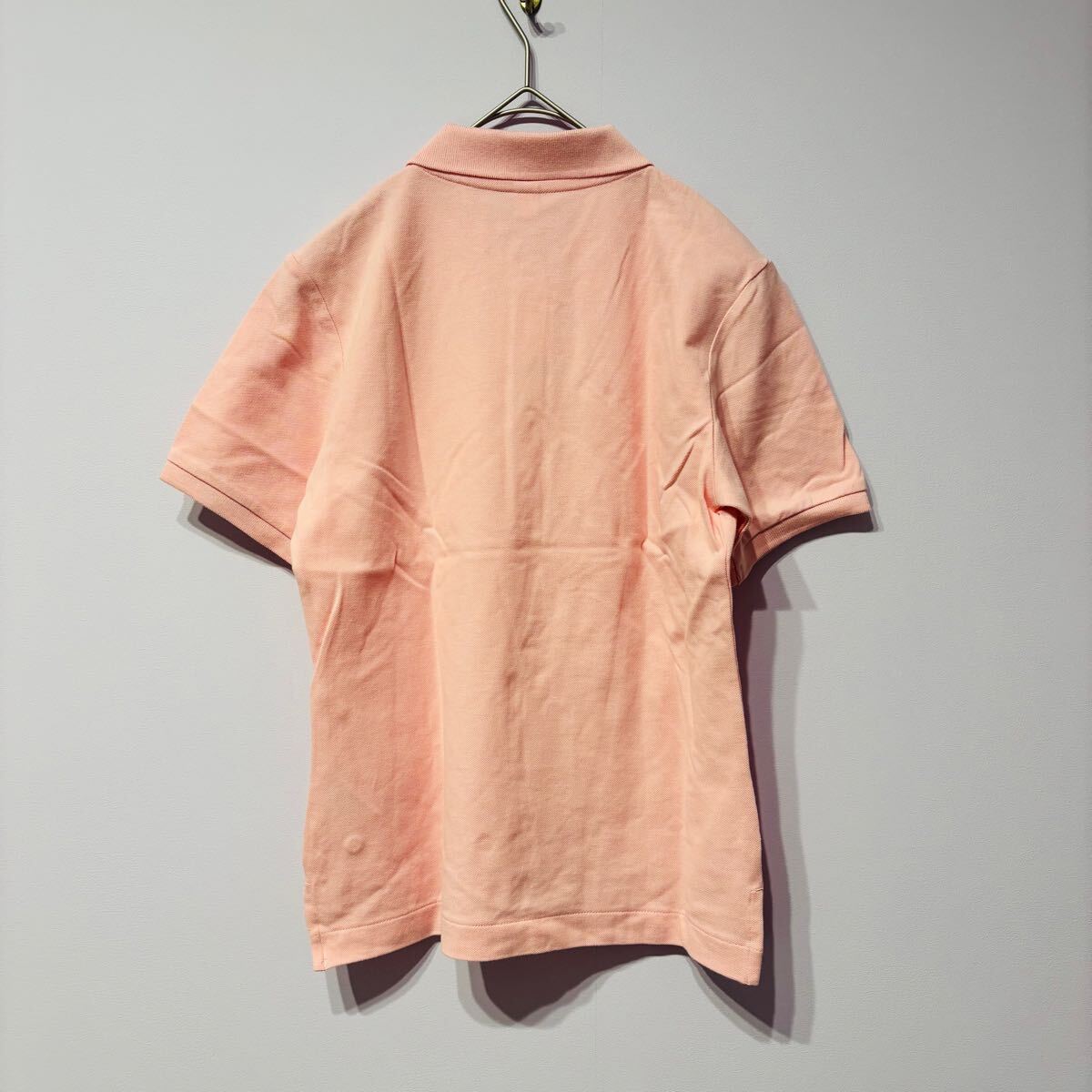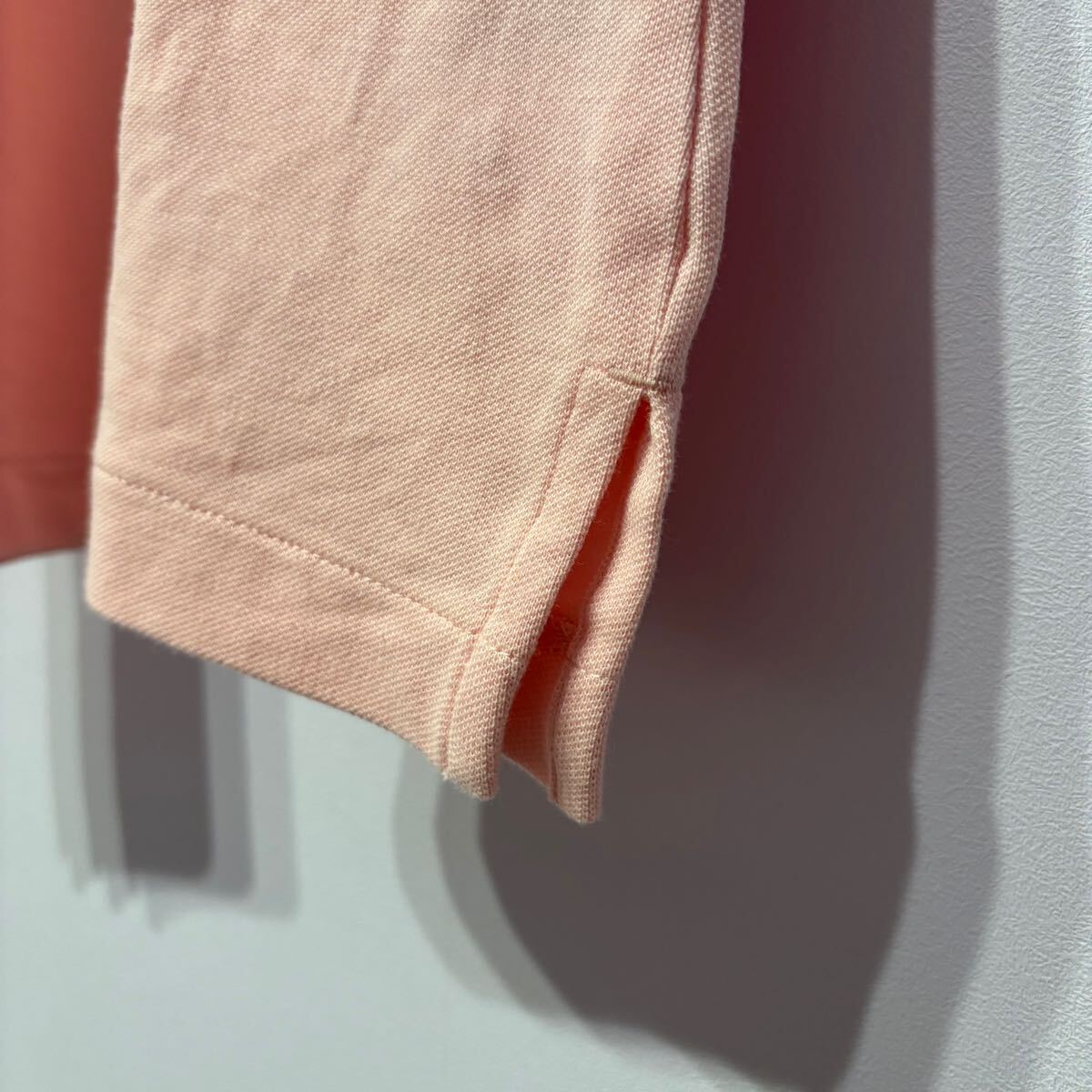 コットン素材のピンクの半袖ポロシャツで、ストレッチが効いているので、とても着やすいと思います。