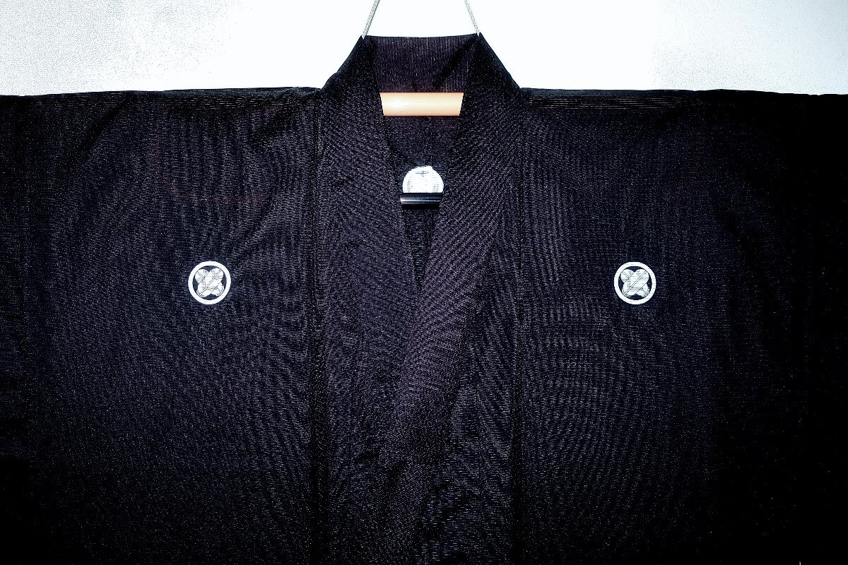 ●この商品の素材と色と用途 この商品の素材と色と用途 弓道なら審査や演武、能楽狂言であれば仕事向き、居合や礼装にも向く黒紋付です。裏のない単衣です。家庭で洗濯も可能な便利な品です。新品仕立て上がりです。背中心あり、ミシン縫いですが呉服と遜色ありません。用途が広がる品ではないでしょうか。 | ||||||