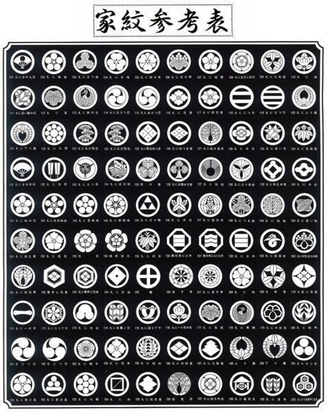 ●家紋の種類 この価格で五つ紋を入れられます。落札の際に家紋の指定をしてください。納期10日位です。紋の案内画像は参考です。これ以外も紋入れは可能です。画像は「丸に違い鷹の羽」 で、七枚目の白丸を石持(こくもち)と言い、そこに染め抜きで仕上げるものです。これまで販売していた平絽は摺り込み紋のため、紋意匠に絽の隙間はありませんでしたが、駒絽の紋付は石持染め抜きのため紋意匠に絽の隙間ができます。生地もさることながら平絽と駒絽の紋付の最大の違いはこの点です。 | ||||||