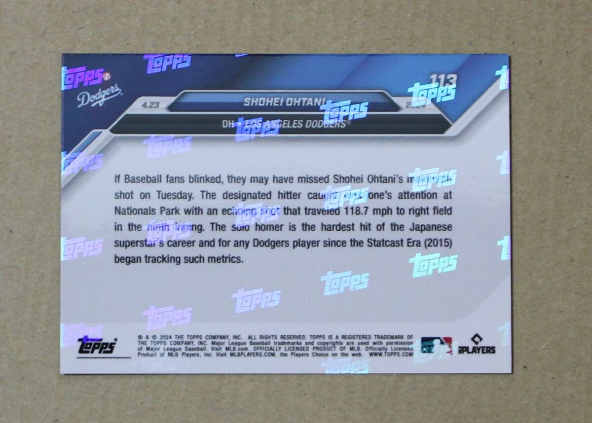 2024 topps now No.113 大谷翔平 「2024.4.23 6号ホームラン 打球速度191km 自己最速」 カード