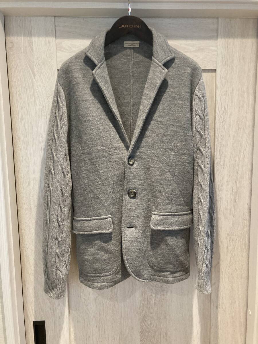 ★定価3.5万★ ~ イタリア 製 ~ MARGANO モルガーノ ピュア ウール 100% 切り替え ニット テーラード ジャケット グレー italy size 48 程