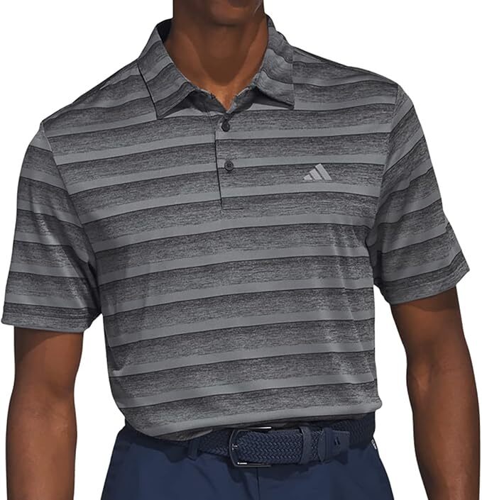 コースでのスタイルをセンス良く見せる、総柄プリントのアディダス ゴルフポロシャツ。