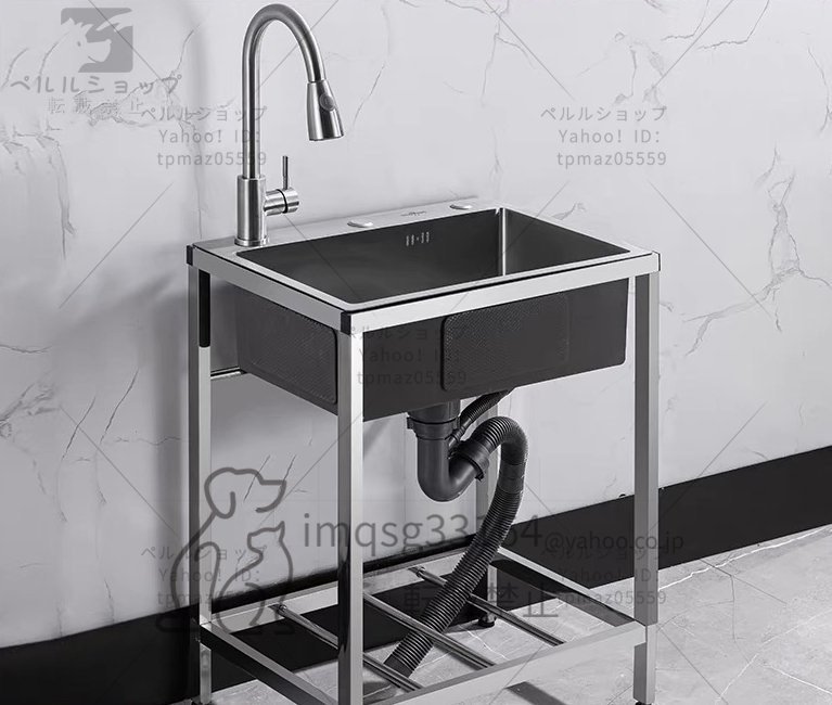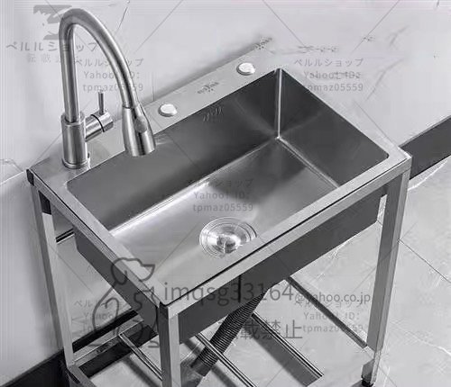 高級シンク☆ステンレス製流し台 台所 1槽シンク 食器洗いシンク 業務用 家庭用 食器洗い器 冷熱蛇口/スタンド付き