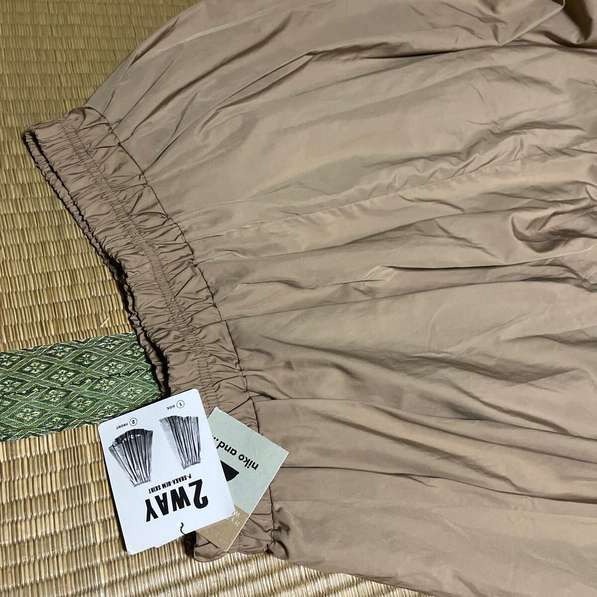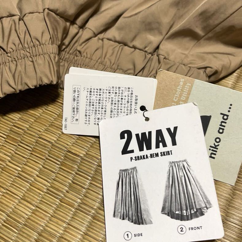 新品タグ付 niko and ニコアンドアシンメトリースカート 2way ベージュ★腰ゴム フレアースカート ロングスカート ギャザースカート