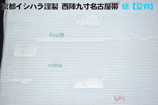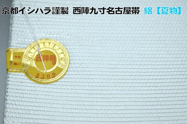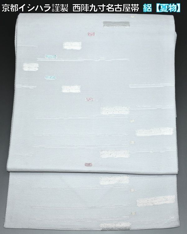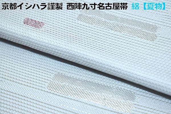 | ※全国送料無料の為、同梱包不可になります。 ※こちらの商品は、他サイトにも出品中の為、購入の際はコメントにて(購入申請あり)お知らせ頂けると幸いにございます。 【西陣織工業組合証紙番号】 No.2392 株式会社京都イシハラ謹製 【状態】 新品 仕立上がり 未使用 日本製 【素材】 絹80% レーヨン・ポリエステル(金属糸風繊維)20% 【サイズ】 全長約3m75cm 幅約31.5cm 【代表カラー】 卯の花(うのはな)色系統[薄い無機質な緑みの青] 【着用用途】 小紋・色無地・軽めの付下げ(附下) 主に礼装にご利用可能です。 夏物きもの・小地谷着物 【着用時期】 単衣、夏時期 (5月頃から9月下旬程)に最適な商品となります。 ※モニターにより若干の色目の差が生じる場合がございますのでご了承下さい。 ● その他の名古屋帯・袋帯・半幅帯・兵児帯は→ コチラ 夏着物 夏名古屋帯 絽帯 紗帯 国産 日本製 シルク お出掛け 正絹 付下げ 色無地 附下 お茶会 夏普段着 着物 小紋 紬 #絽 紗 訪問着 付け下げ 単衣用 お稽古 夏のお洒落きものに |