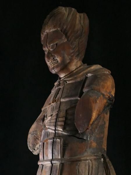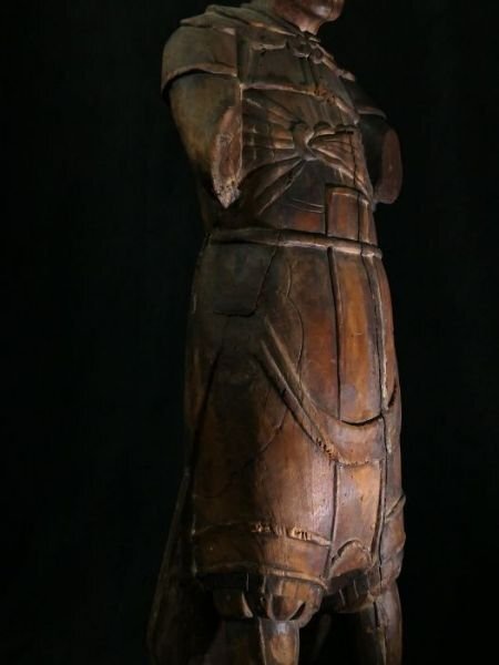 商品説明 | ~寸法~ 台座を含む御本尊の全高・・・約 76.5cm 力強き細工により 眼光鋭き迫力ある彫刻の施された 時代を経た古き良き大作でございます。 沢山の画像をご用意しておりますので 本作品に関しましては是非お時間の許されます限り、 ゆっくりとご覧になって頂き入札に御参加下さい。 作行から見て「持国天」と思われ、 また時代はおそらく鎌倉時代頃と推測しております。 詳しくは画像にてご確認下さい。 大切にして頂ける方の元へ届けば幸いでございます。 ~状態~ 全体的に見て状態は概ね良好です。 経年によるキズくらいはございますが 時代を感じさせる大作でございます。 詳しくは画像にてご確認下さい。 許容範囲内の時代傷みはご理解下さい。 |