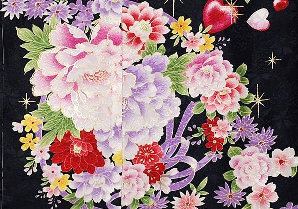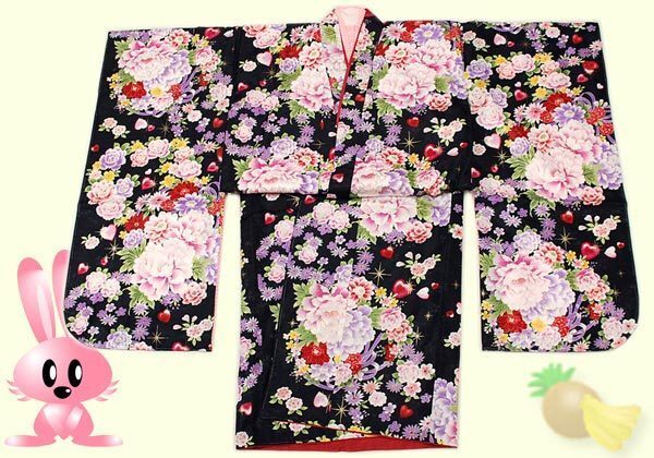京有栖☆七五三☆七歳用 四つ身(振袖)☆化繊☆黒色☆A-1