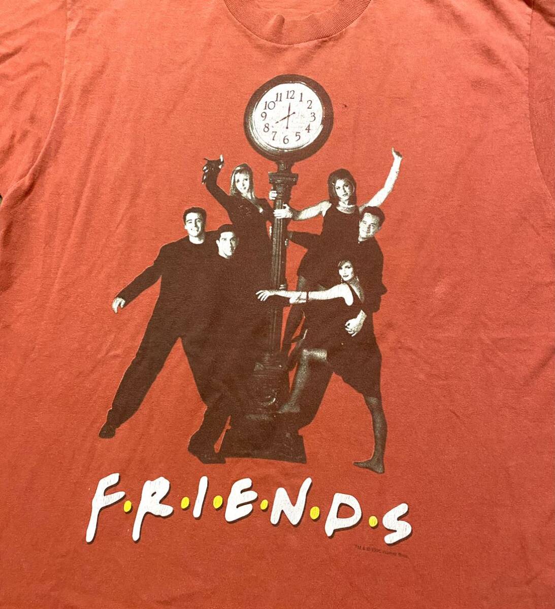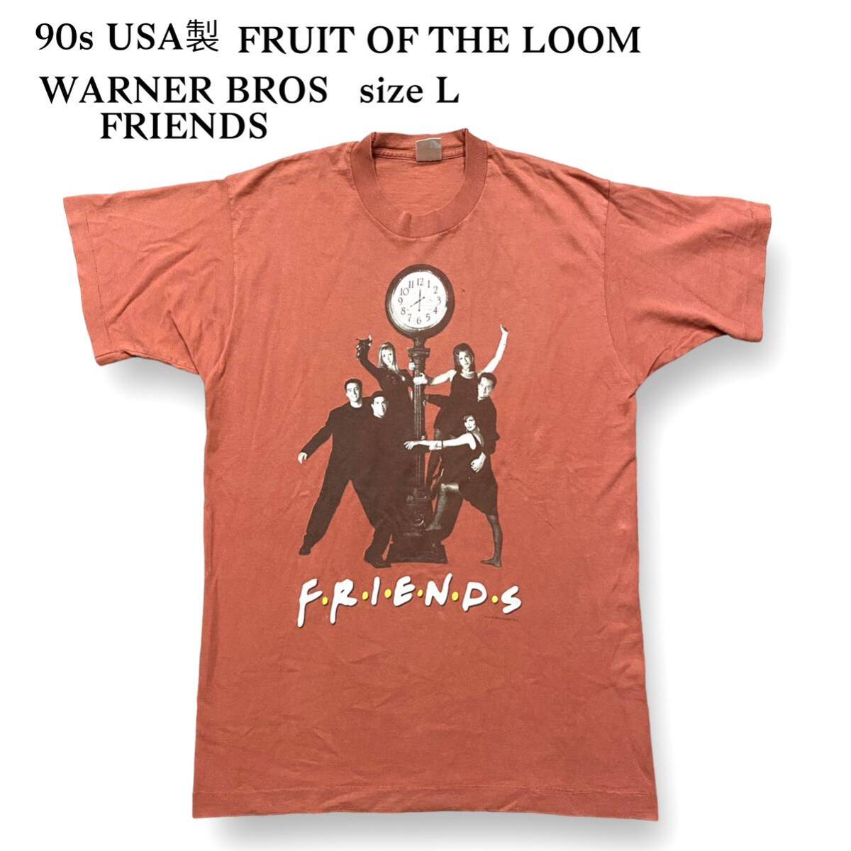 90s USA製 FRUIT OF THE LOOM WARNER BROS ワーナーブロス FRIENDS フレンズ 半袖 Tシャツ ヴィンテージ 朱色 海外 フルーツオブザルーム L