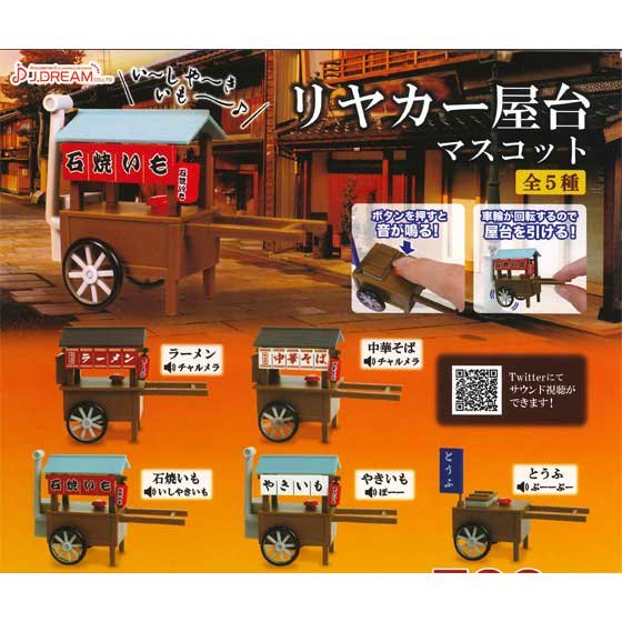 J.ドリームから発売のガチャ「リヤカー屋台マスコット 」の"ラーメン" になります。500円ガチャだけあって、細部まで精巧かつ特徴を見事にとらえた造形となっています。またボタンを押すと音が鳴ります(笑)。提供品は内袋未開封、リスト付きで、破損防止のためカプセル入りで提供します。
