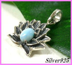 シルバー925銀の天然石ラリマー[ドミニカ産] 蓮の葉ペンダント/ALL50%OFF