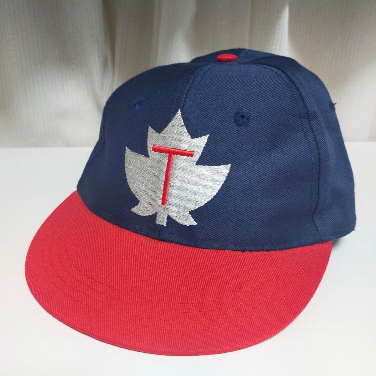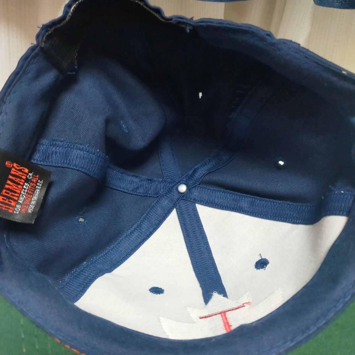 | HERMANS ハーマンズ 6パネル ベースボールキャップ 帽子 T 刺繍 90s 台湾製 ワンサイズ ネイビー×レッド | |