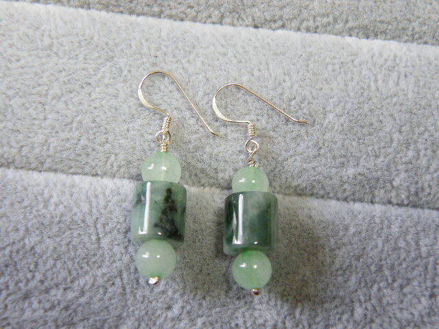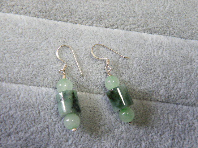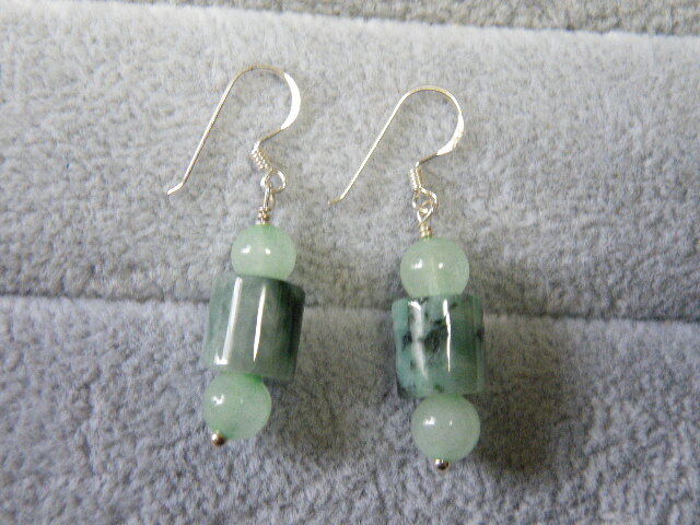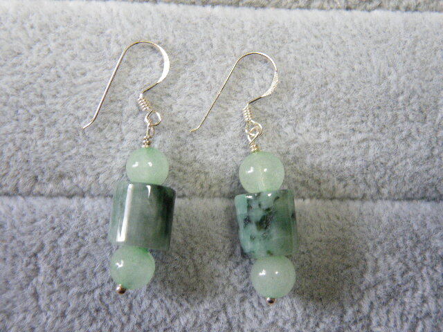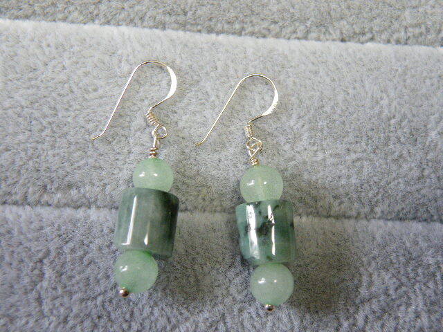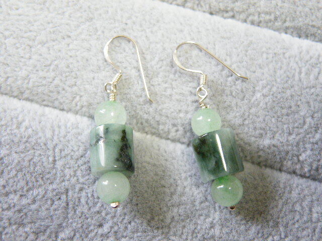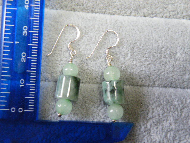 R00090.ヒスイ 翡翠 シルバー925 ハンドメイド ロングピアス