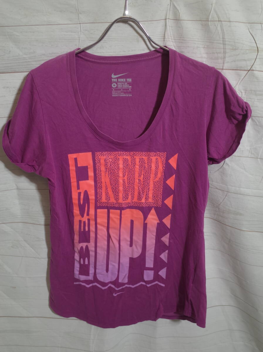 レディース pk524 THE NIKE TEE ナイキ メッセージ プリント 半袖Tシャツ M パープル 紫