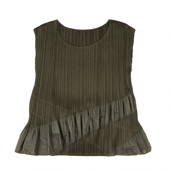 | プリーツプリーズPLEATS PLEASE 切替プリーツノースリーブ カーキ3 |