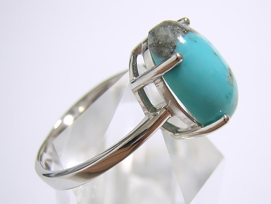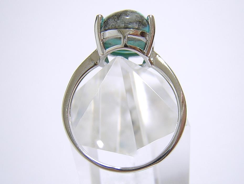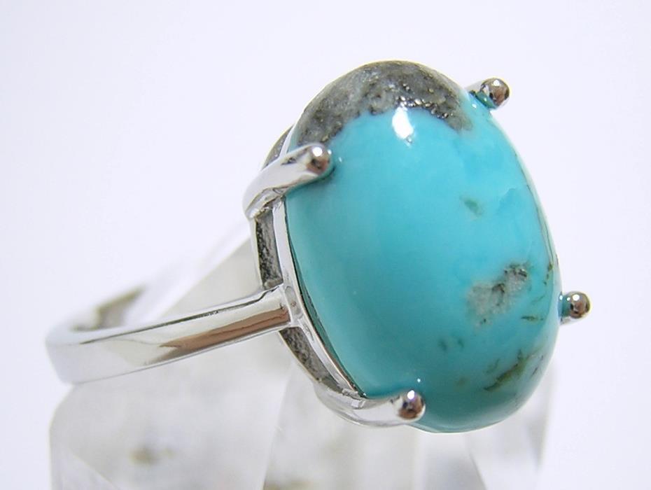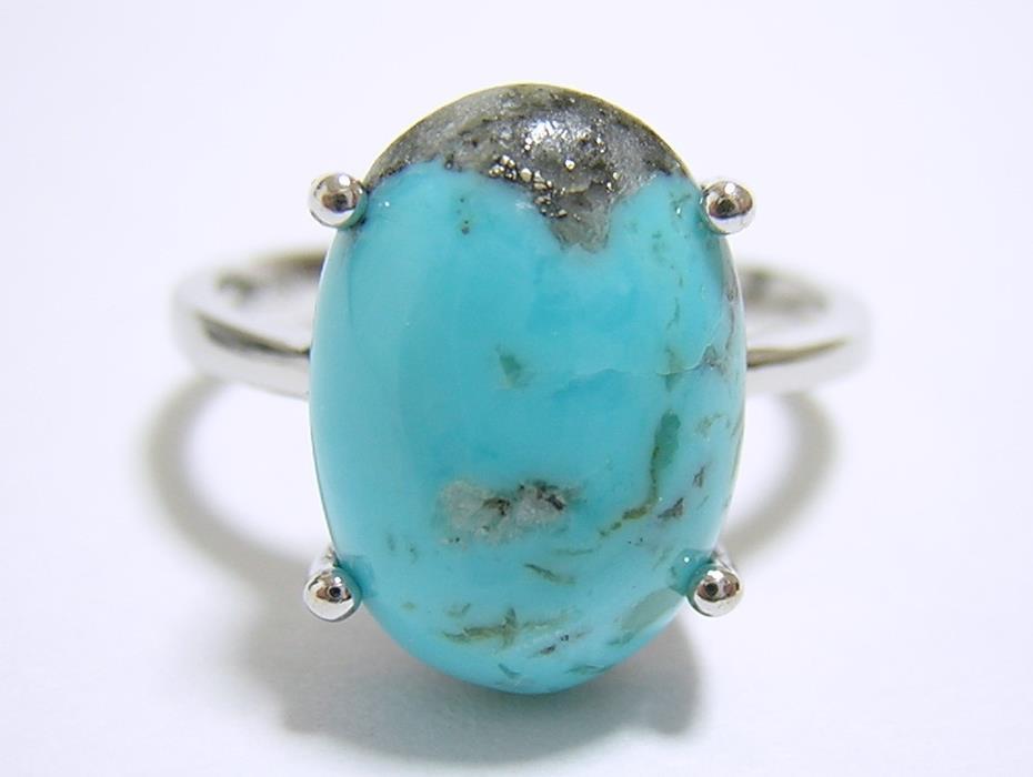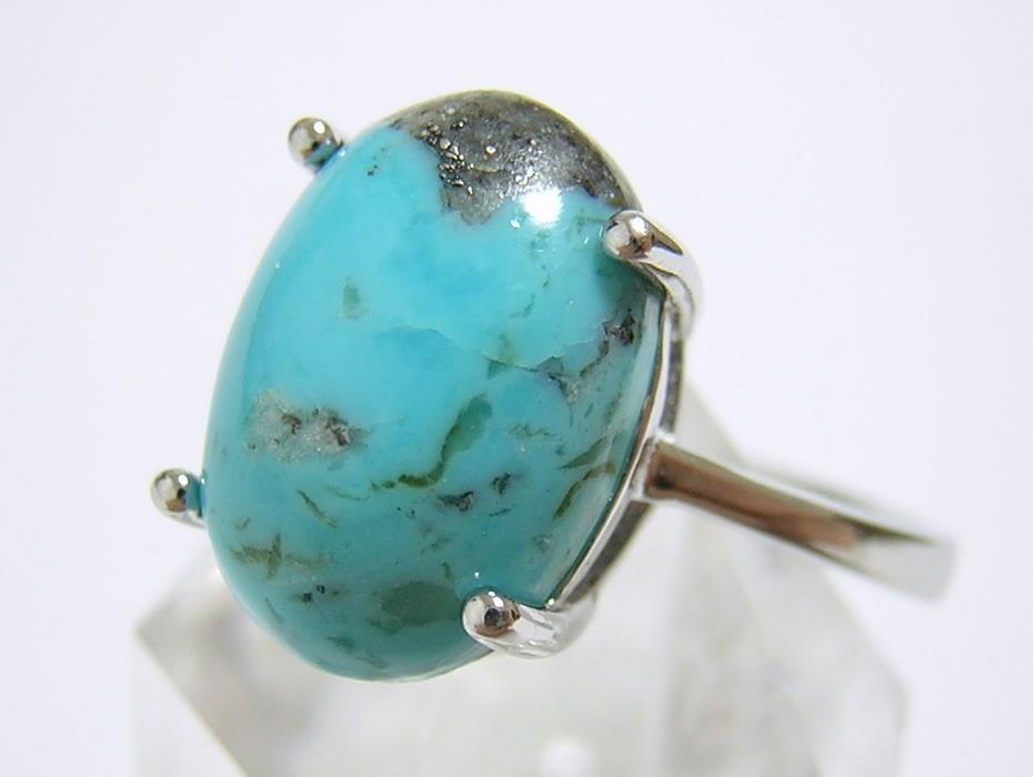 アリゾナ産の天然ターコイズを使用したデザインリングです。 ターコイズの大きさは約14×10mmで、表面に天然由来のキズやクラックがあります。 【石名】天然ターコイズ 【産地】アリゾナ産 【処理】非加熱 【カット】オーバルカボションカット 【重さ】3.1g 【サイズ】16.25号 (お直しは承れません) デザイン部:縦14mm×横20mm 【素材】シルバー925 (14金ホワイトゴールド仕上げ) 【刻印】S925 【状態】新品 ※地金部分に製作時からの微細な小傷やスレがあります。 |