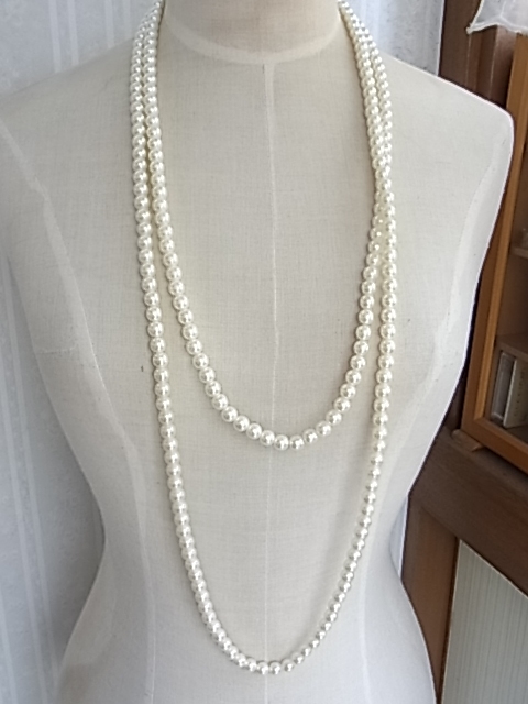 ◆ビンテージ/ヴィンテージ fakeパール イミテーションパール 超ロングで豪華感 ゴージャス感 2連や3連でも素敵 ネックレス
