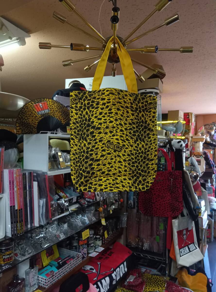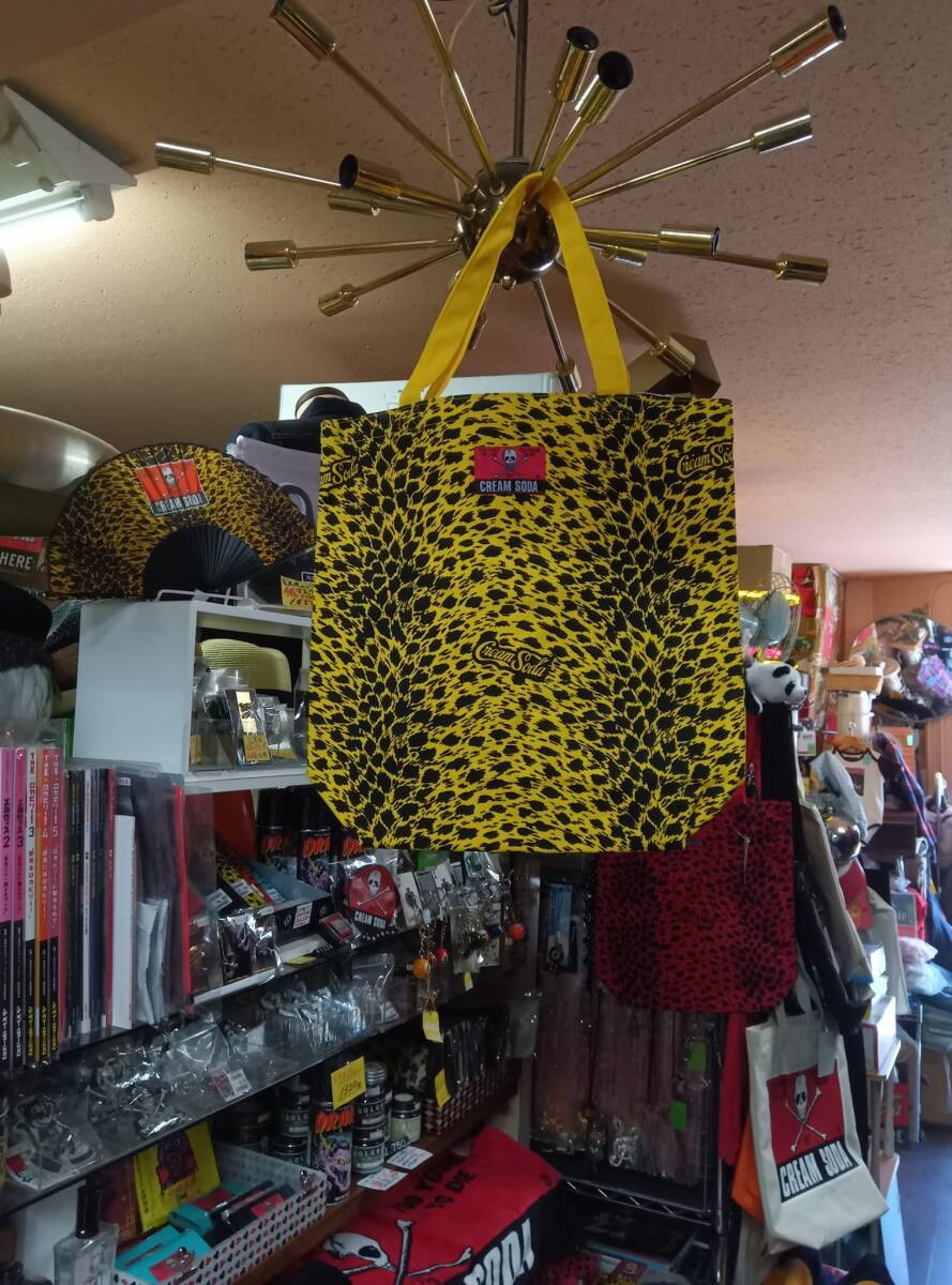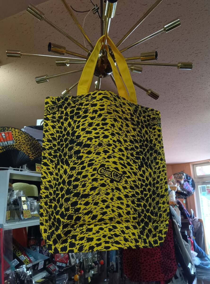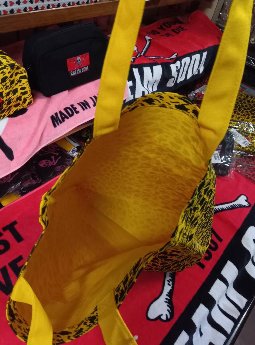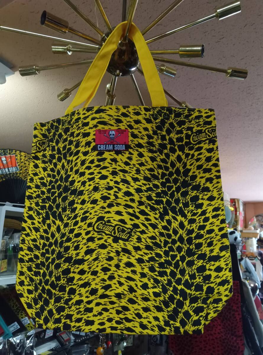 黄色ヒョウ柄トートバッグ!検索CREAMSODAロカビリーブラックキャッツマジックピンクドラゴン昭和レトロ80年代トートバック手提げバッグ