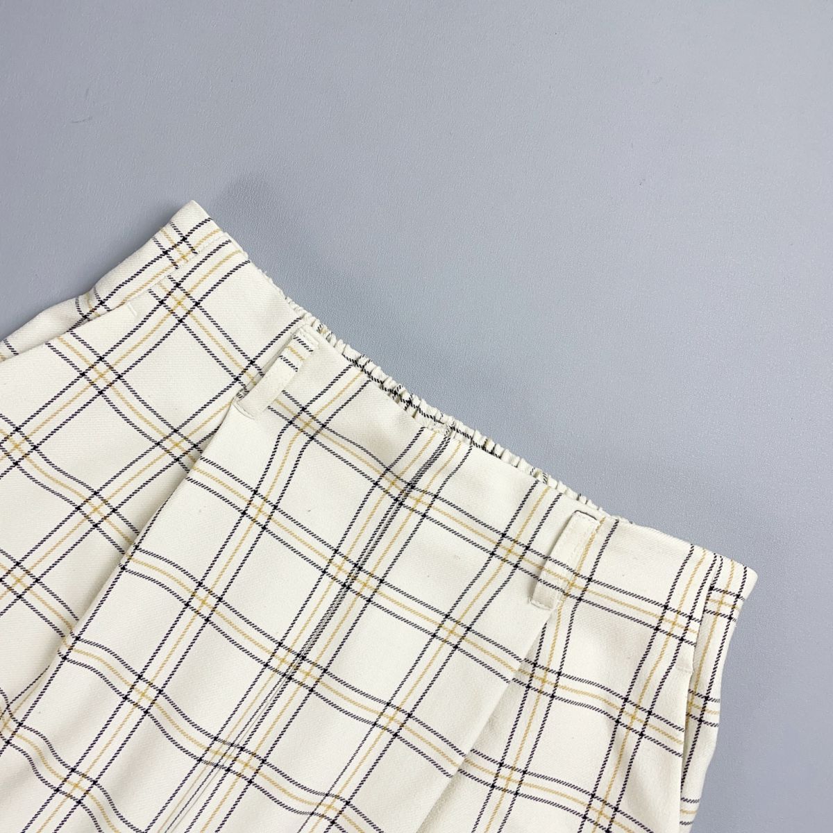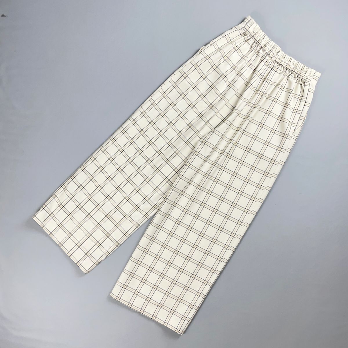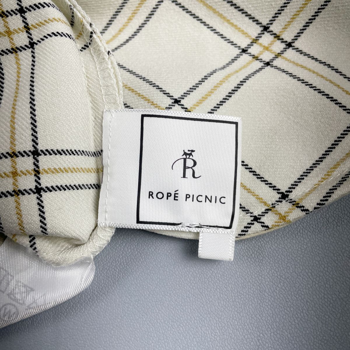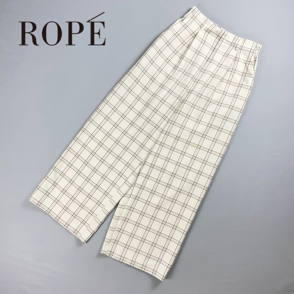 美品 ROPE' PICNIC ロペピクニック チェック柄タックワイドパンツ ボトムス レディース 白系 サイズ36*RC840