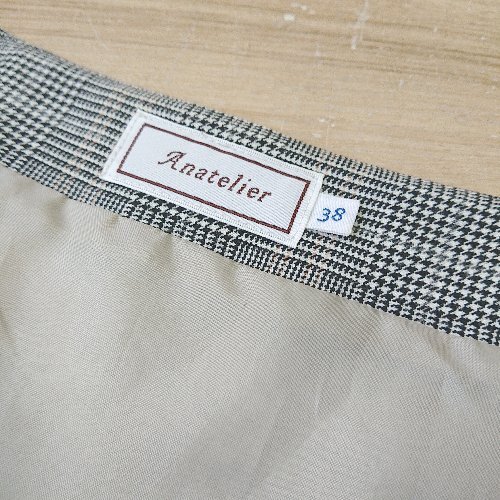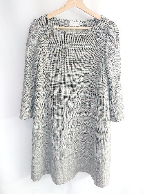 ◇ anatelier アナトリエ チェック柄 秋 冬 綺麗め 長袖 膝丈 ワンピース サイズ38 グレー系 レディース E