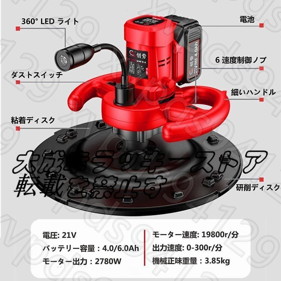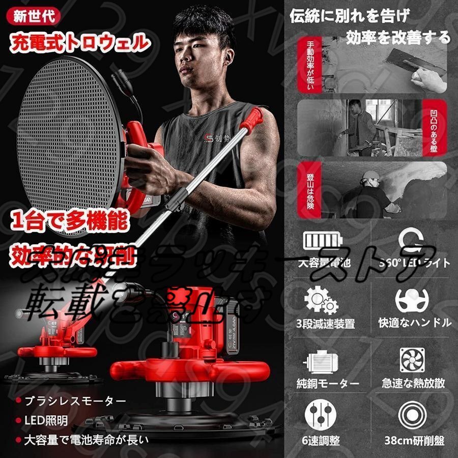 人気新品!電気サンダー セメント コンクリート研磨機 電動トロウェル コードレス ハンドヘルド 6段変速 大直径38cm 延長ロッド*1付き