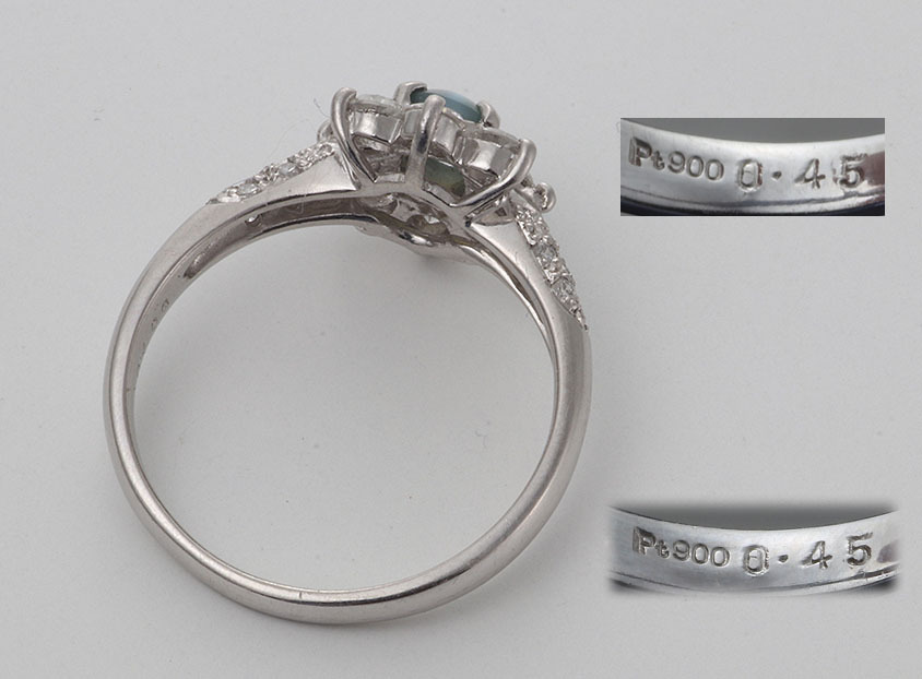 マテリアル | 天然アレキサンドライト0.45カラット(カラッと刻印あり)天然ダイア合計0.70カラット(カラッと刻印有り)プラチナ900製 |