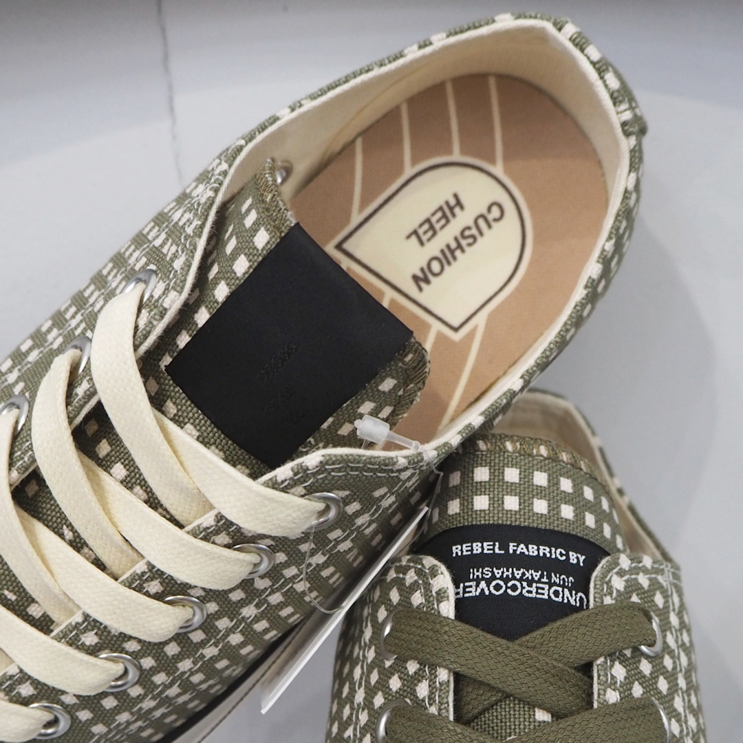 2021-2022awアイテムで、アンダーカバー1996年の名作素材を使用し、コンバース オールスター チャックテイラー モデル、2ブランドのタグ、二色のシューレース、クッション性に優れたEVA製のインソール、vibramソール、三ツ星ラベルなど、細部まで凝ったデザインです。