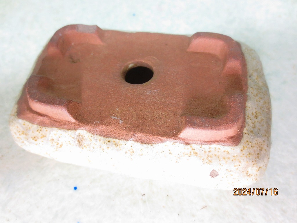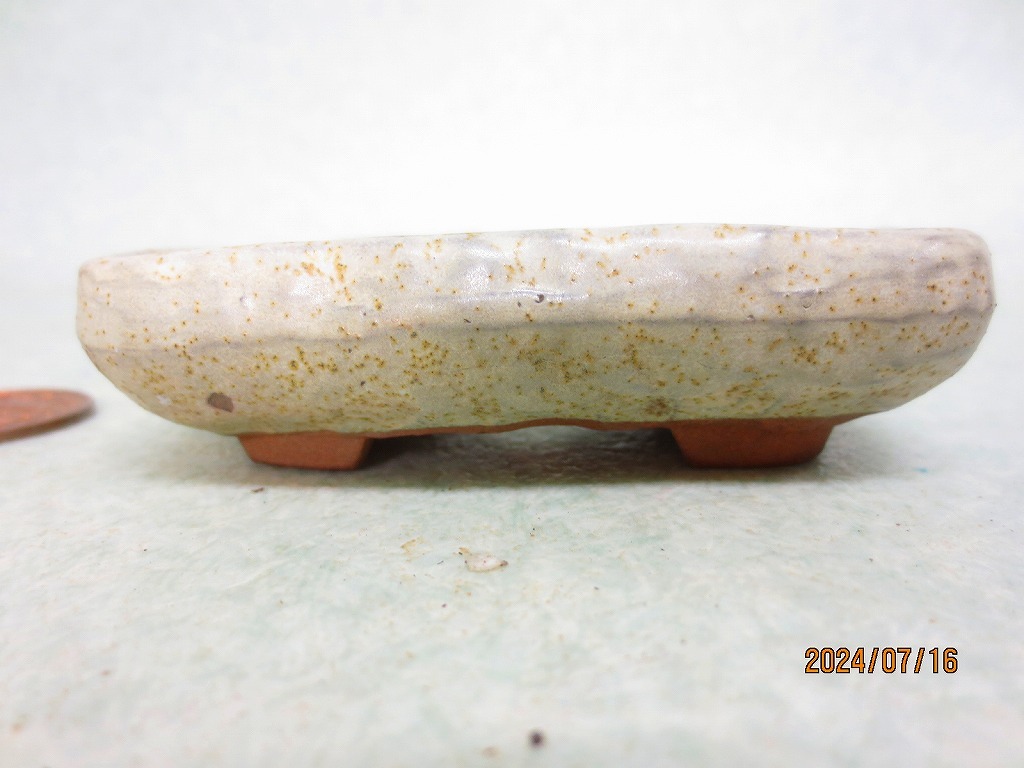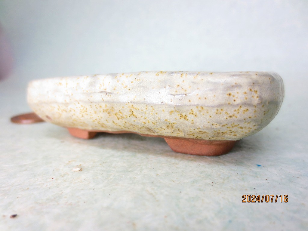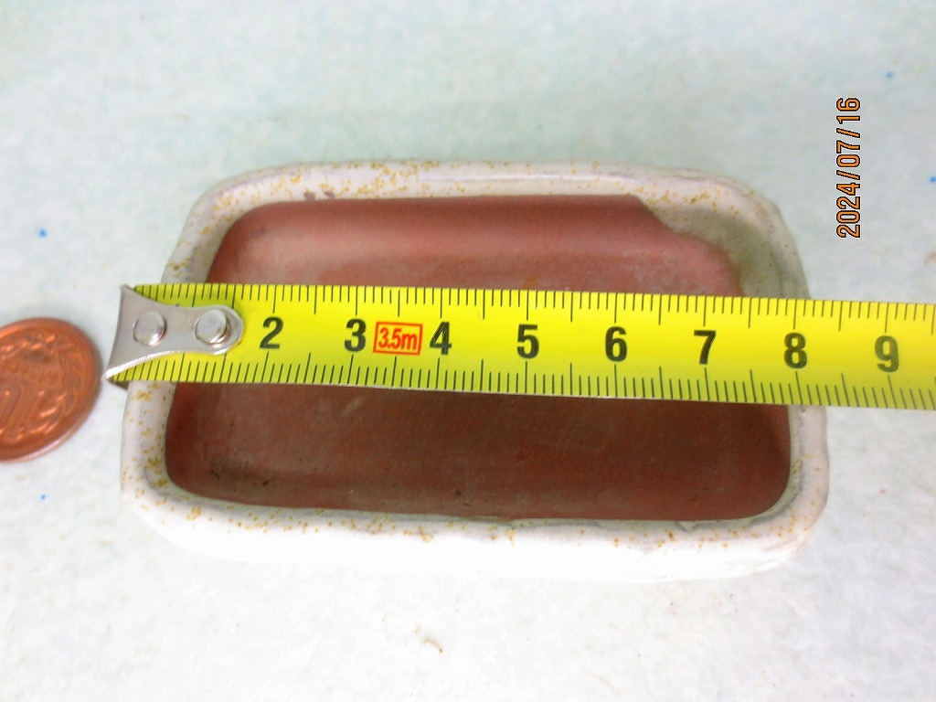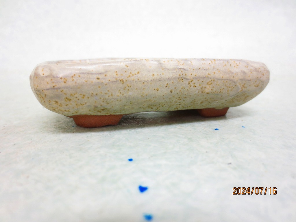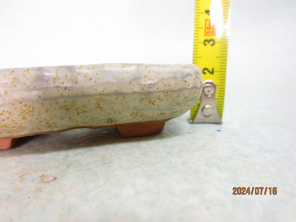 [緑の市場] 小品盆栽鉢 銘あり 白釉長方鉢 小傷有 (J112)送料無料/有料(ゆうパック)選択可※無料はメール便ポスト投函 ゆうメール便選択は送料無料で3㎝厚みの箱で発送します。(3㎝で入らない場合は定形外郵便で発送します。)ポスト投函ですから配送日時指定はできません。補償なしです。ゆうパック選択は送料有料で補償あります。複数点追加できます。*盆栽と同梱包ご希望の際は送料不要ですが別途取引メッセージでお知らせください。 ヤフオクの取引においてメッセージは特に必要ありません。挨拶などを省略できる取引システムですし取引ナビの通知で進行状況が判るので都度の連絡(送金や受け取りのメッセージ)は不要です。特別な連絡事項があればお知らせください。双方合理的に進めましょう。また、お急ぎの方は入札をご遠慮ください。業務時間内での対応になります(土日祝休業)。 寸法は一緒に撮影しているスケールまたは比較物をご参照ください。 飲料缶は高さ約10㎝、直径約5㎝です。 500mlペットボトルは高さ約21㎝です。 僅かなカスレ傷がある前提でお求めください。 画像(撮影時)では小細部まで表現できないので完璧品をお求めの方は入札ご遠慮ください。 |