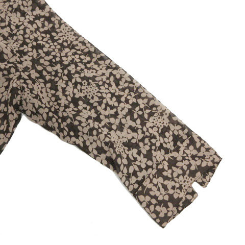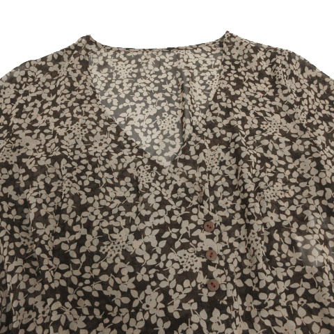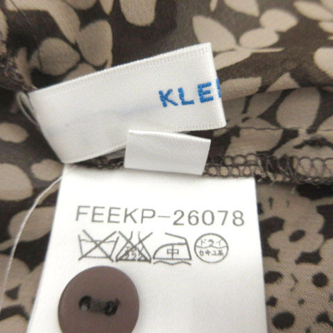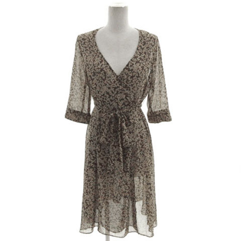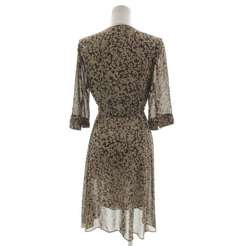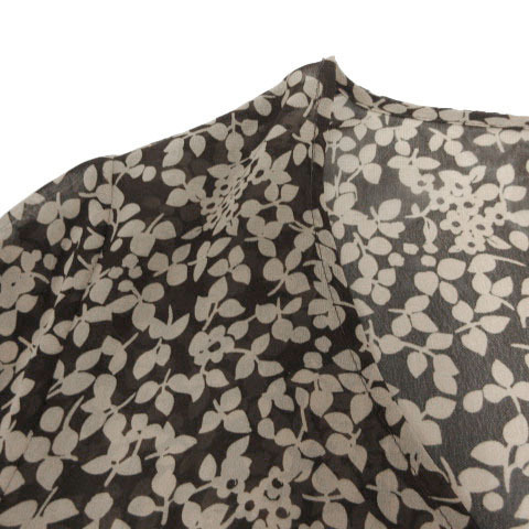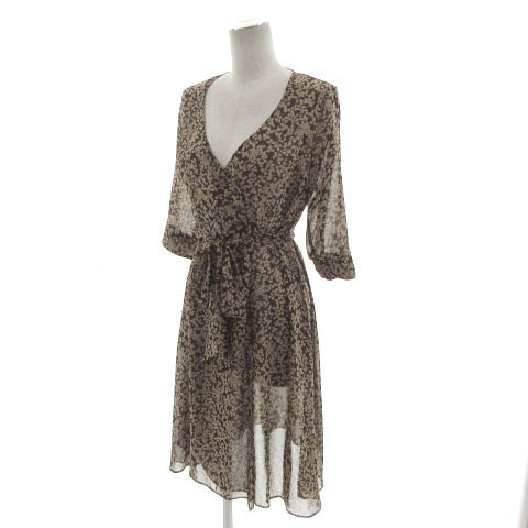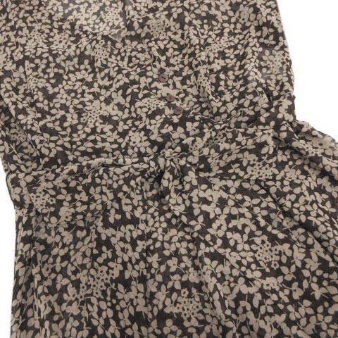 クランプリュス KLEIN PLUS ワンピース ヘンリーネック 五分袖 ひざ丈 シアー素材 シースルー リボンベルト 花柄 ブラウン 茶 38