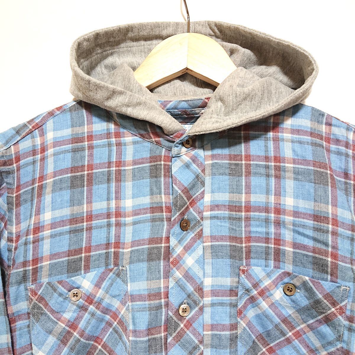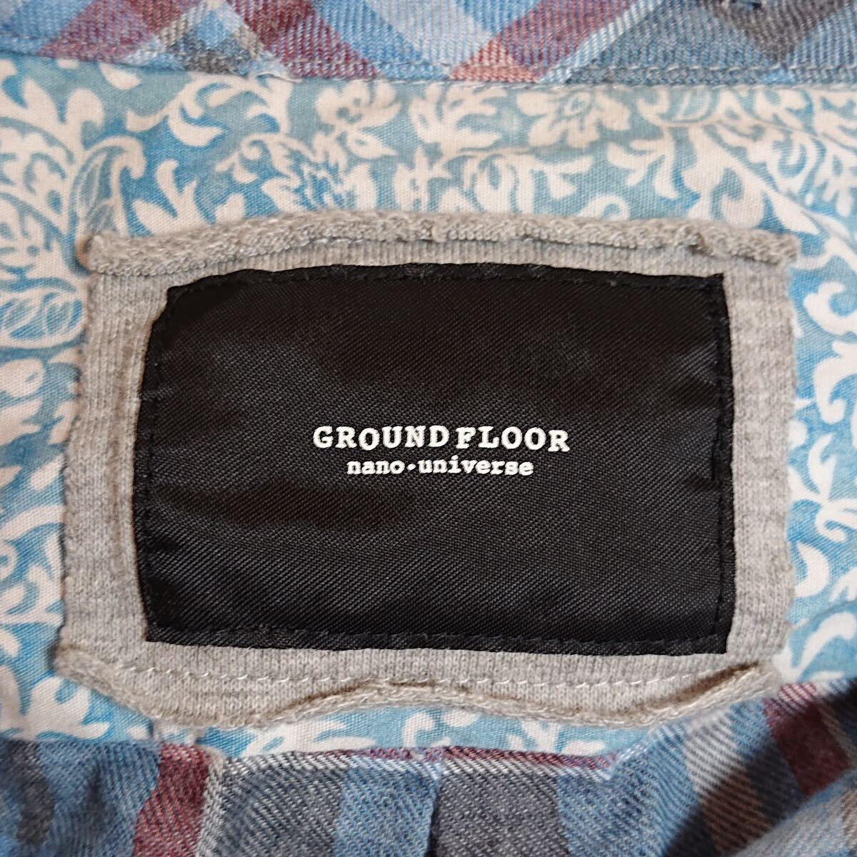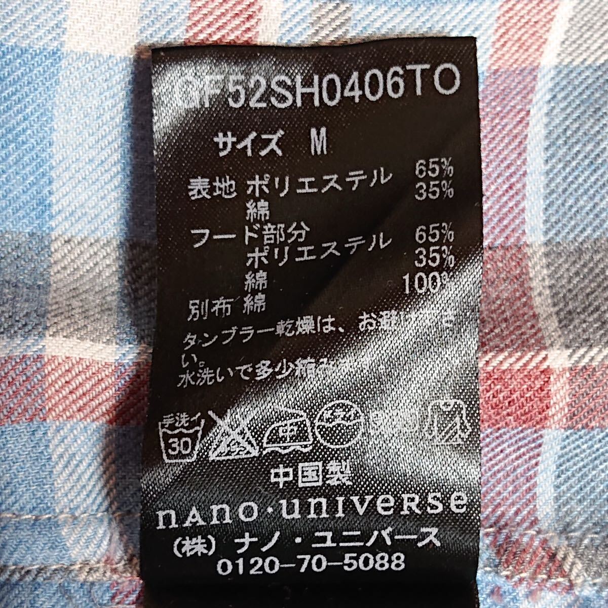 H9423gg nano universe GROUND FLOOR(ナノユニバースグラウンドフロアー) サイズM チェックシャツ フード付 チェック 柄 ブルー系 メンズ