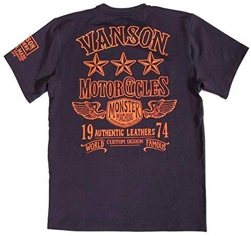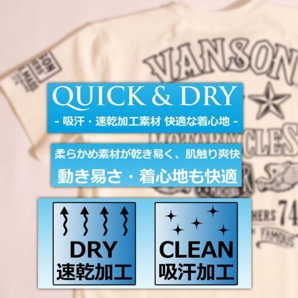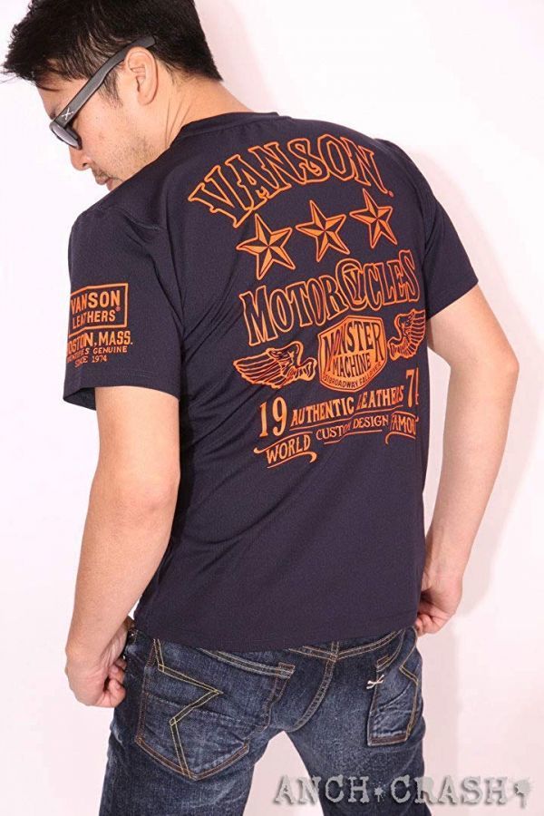 当店別注 VANSON ドライ 半袖Tシャツ スリースター★★★吸水速乾 抗菌防臭 UVカット ネイビー【S】ACV-902 バンソン 男女兼用 吸汗速乾