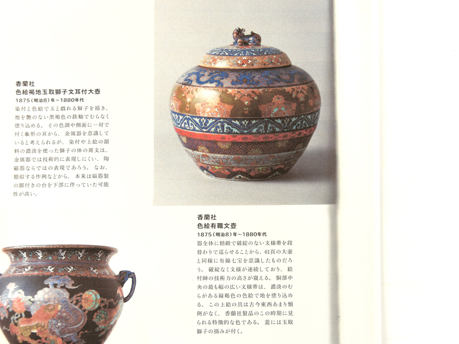 旧宮家伝来 所載品類似品 明治期 オールド香蘭社 色絵玉取獅子文耳付大壷 共蓋 |