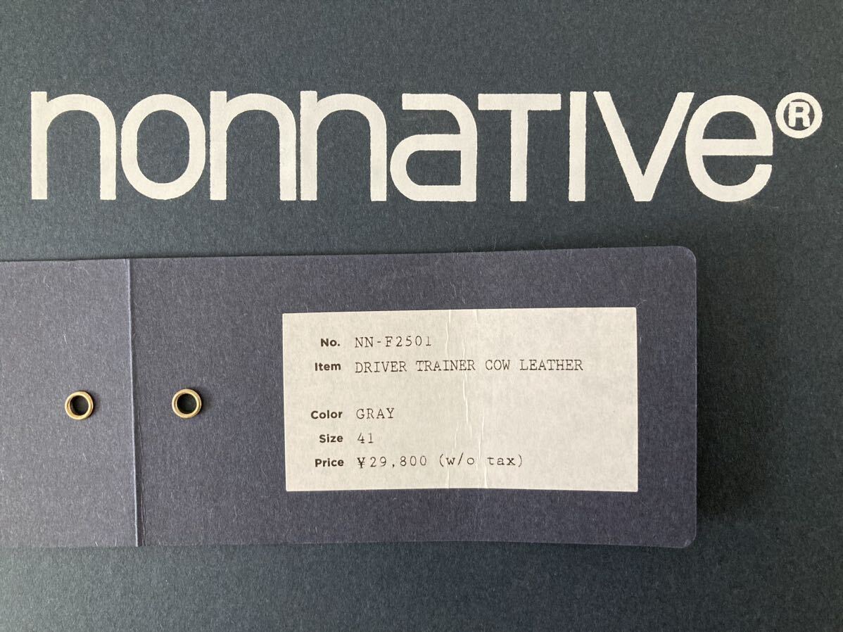 nonnative DRIVER TRAINER COW LEATHERです。色はGRAY、サイズは41(26.5)、アウトソール29.5(素人採寸)、状態は10中8、箱・タグ付き、定価32184円です。中古ですのでノークレーム・ノーリターン、状態に神経質な方の入札はご遠慮下さい。わからない事がありましたら、何でもご質問下さい。宜しくお願い致します。