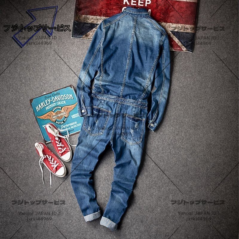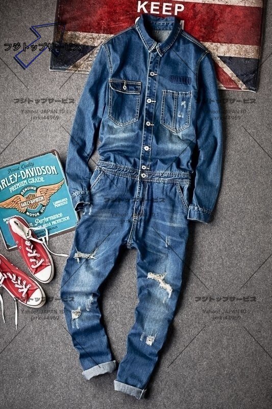 メンズサロペット オーバーオール デニム オールインワン ジーンズ つなぎ サスペンダーズボン ペインター作業服 ダメージ M~2XL選択/1点