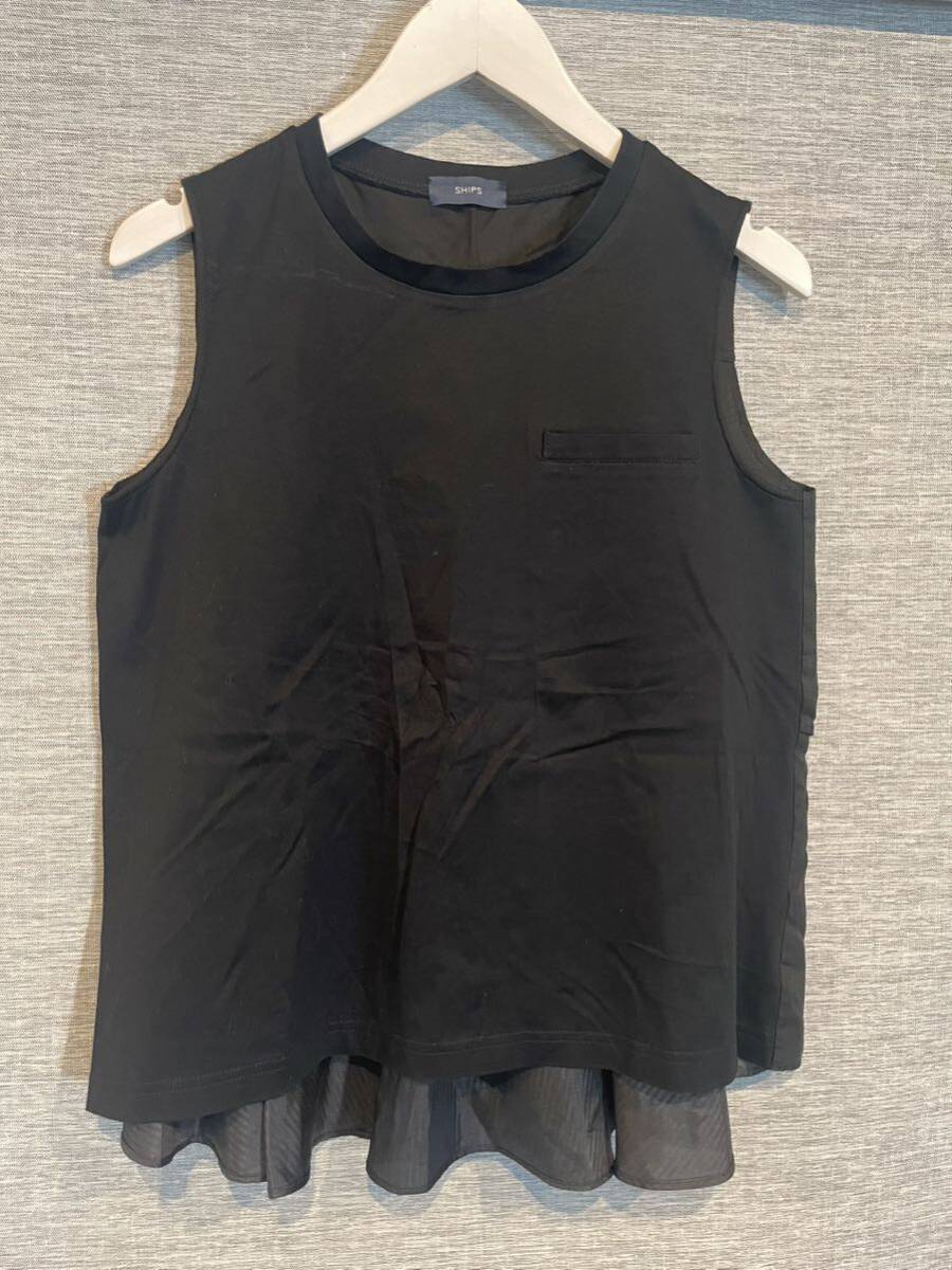 極美品shipsシップスノースリーブカットソートップス黒ブラックレディース