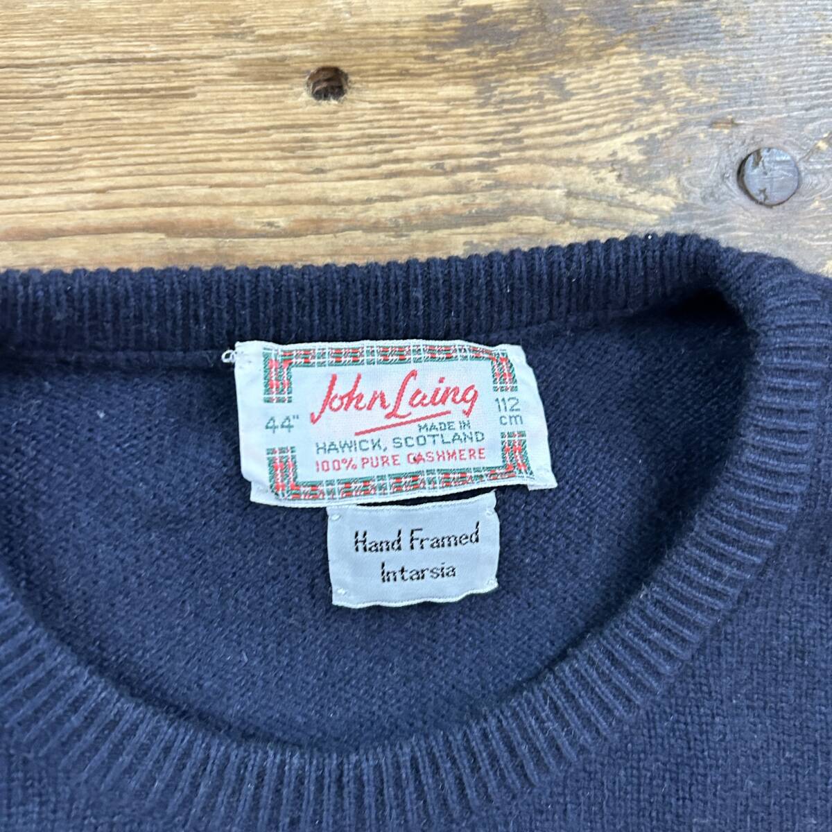 美品 john laing / ジョンレイン カシミア100% 飛行機デザイン セーター スコットランド製 グレー サイズ44 m~l程度 used
