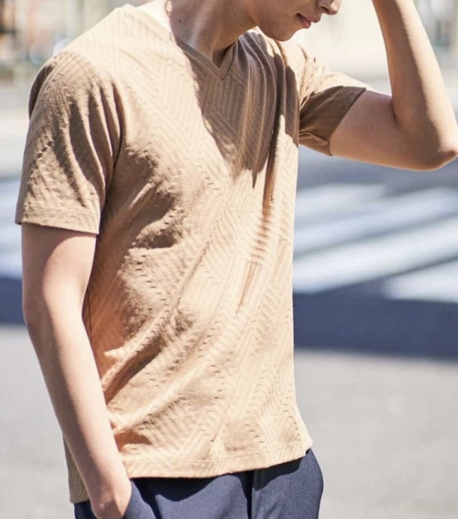 上品さ、爽やかさ、高級感があるカットソーにワイルドやクールな印象を与えるVネック、一見、二律背反ともいえる2つの融合がひとつ上のオシャレに導いてくれます。