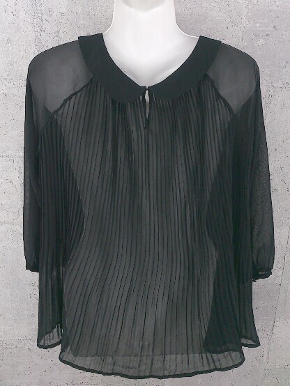 ◇ Ray BEAMS レイ ビームス プリーツ プルオーバー 長袖 シャツ ブラウス ブラック レディース