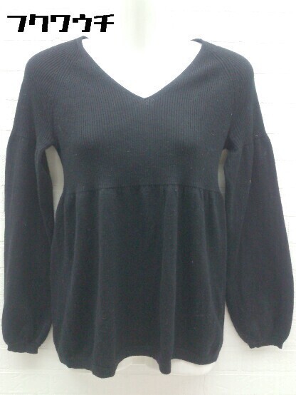◇ INDIVI インディヴィ ウール 切替 長袖 ニット セーター サイズ38 ブラック レディース