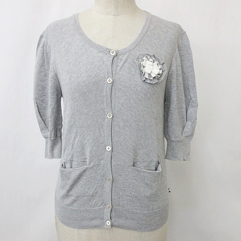 ポールスミス ブラック Paul Smith BLACK カーディガン 七分袖 丸首 コサージュ 綿 グレー M レディース