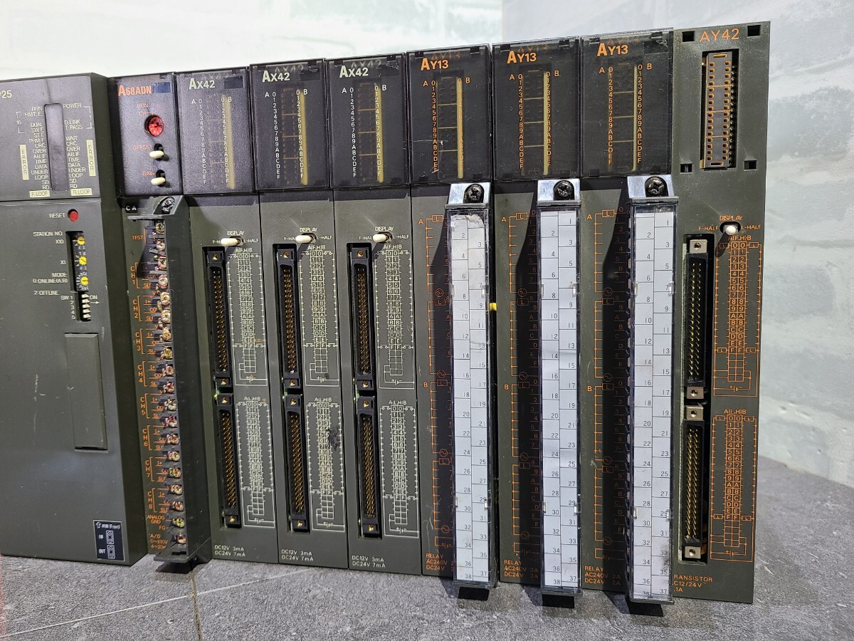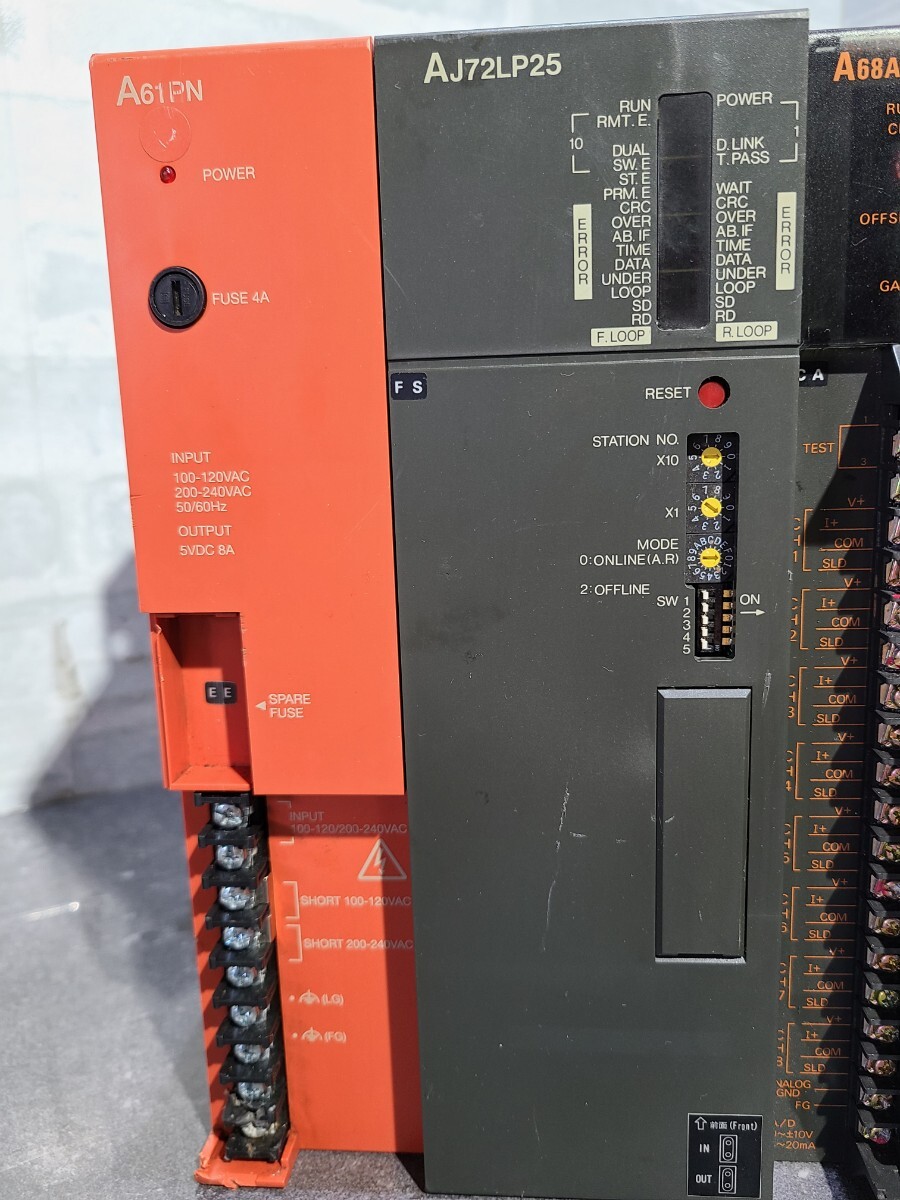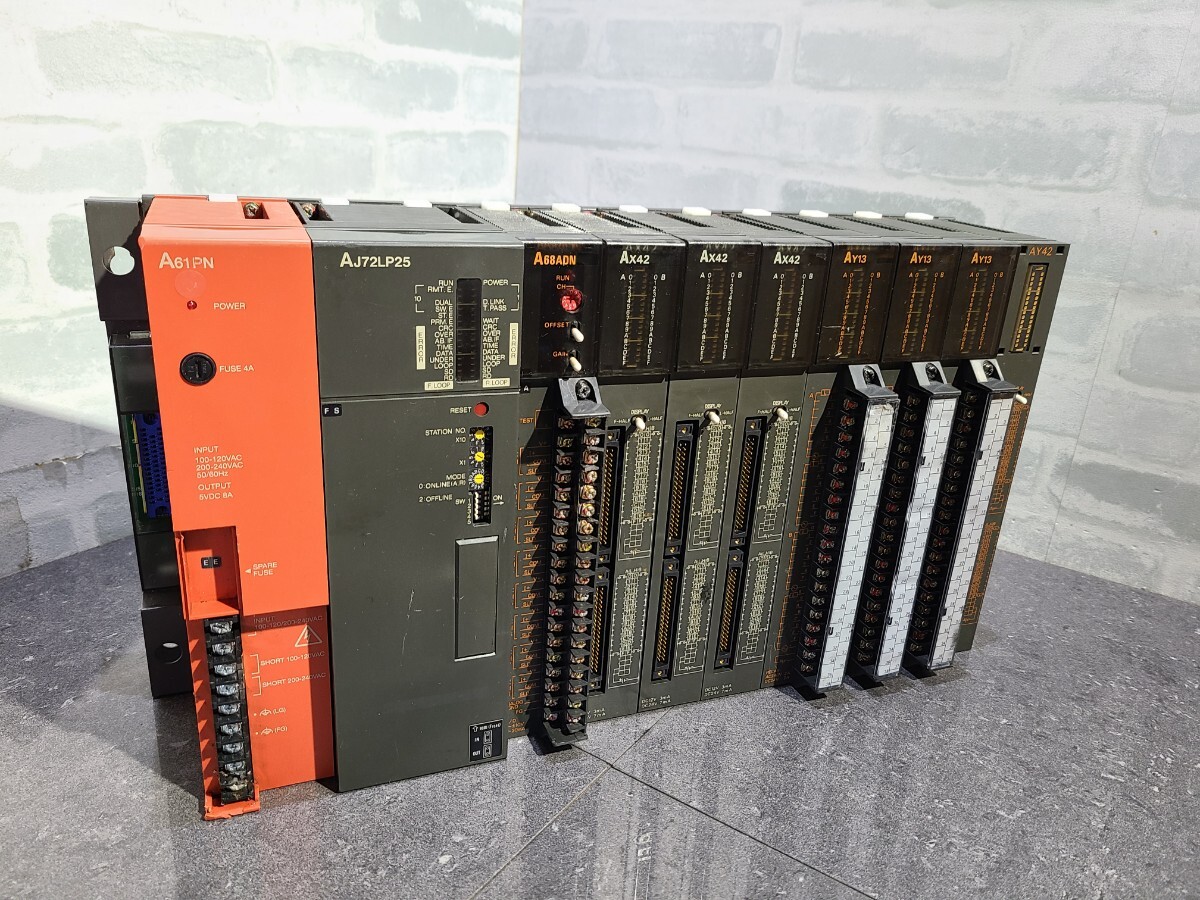 【現状品】管1D260 MITSUBISHI MELSEC シーケンサ プログラマブルコントローラー A61PN/AJ72LP25/A68ADN/AX42(×3)/AY13(×3)/AY42(×1)