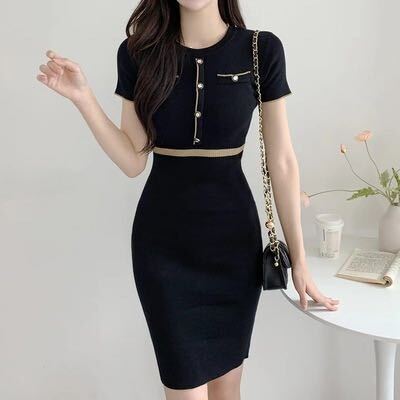 涼しげな素材感とカジュアルなデザインが特徴のサマーニットワンピースです。