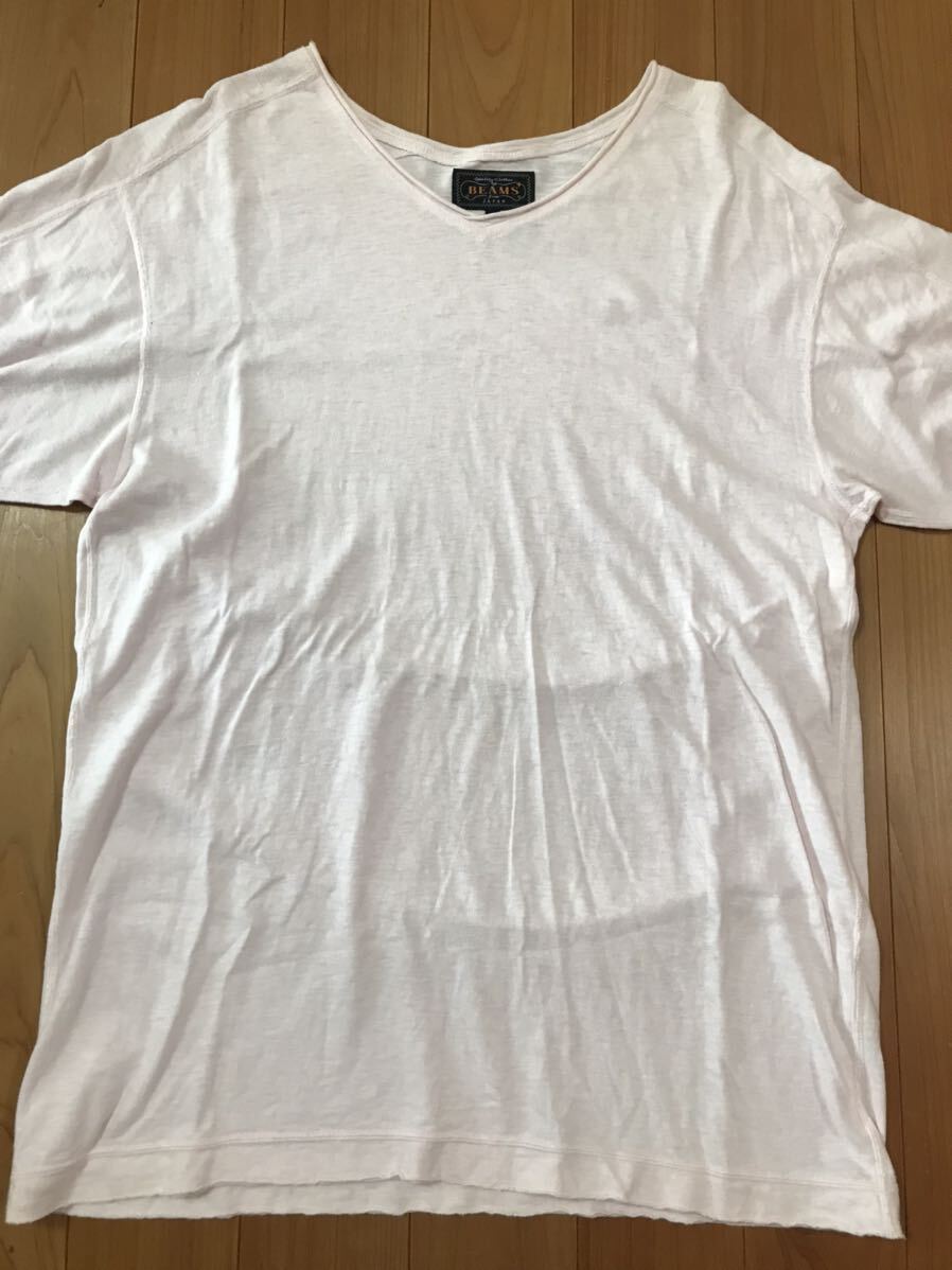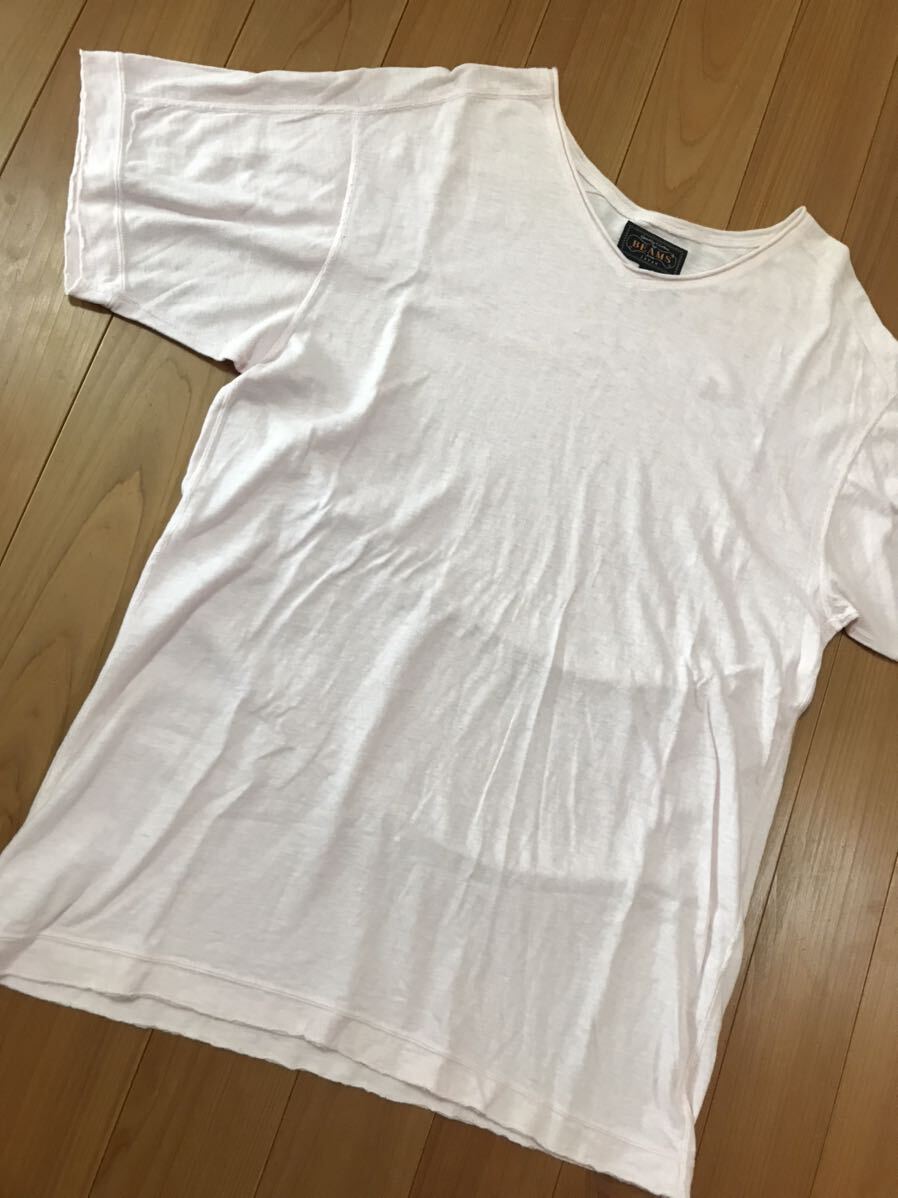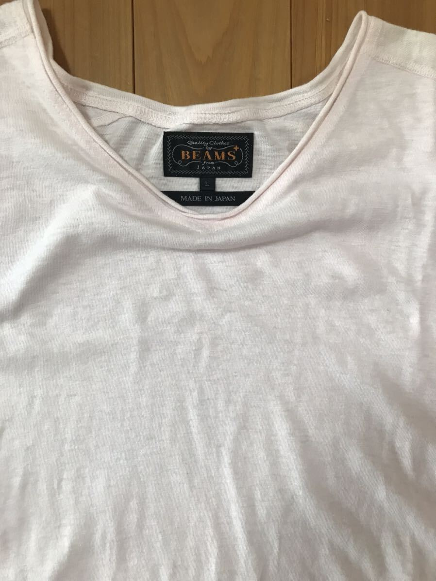 ビームスプラス Tシャツ サイズ表記 L カラー 薄ピンク系 コットン100 日本製