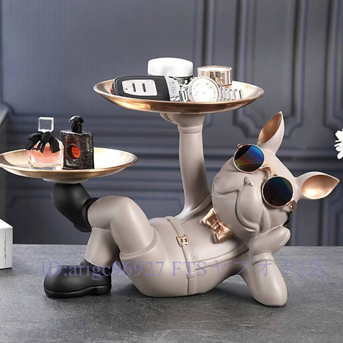 B1572☆新品フレンチブルドッグ 犬 トレイ 玄関鍵置き 小物置き 置物 オブジェ 飾り ディスプレイ お菓子入れ インテリア グレー