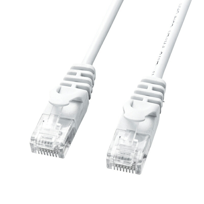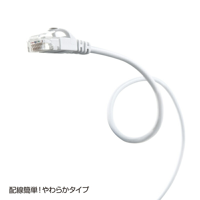 直径3.8mmの極細タイプ、爪折れ防止カバー付きギガビット対応カテゴリ6LANケーブル。2m・ホワイト。