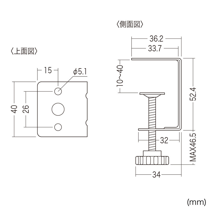 ●デスクへの取り付け幅は10~40mmまで対応します。